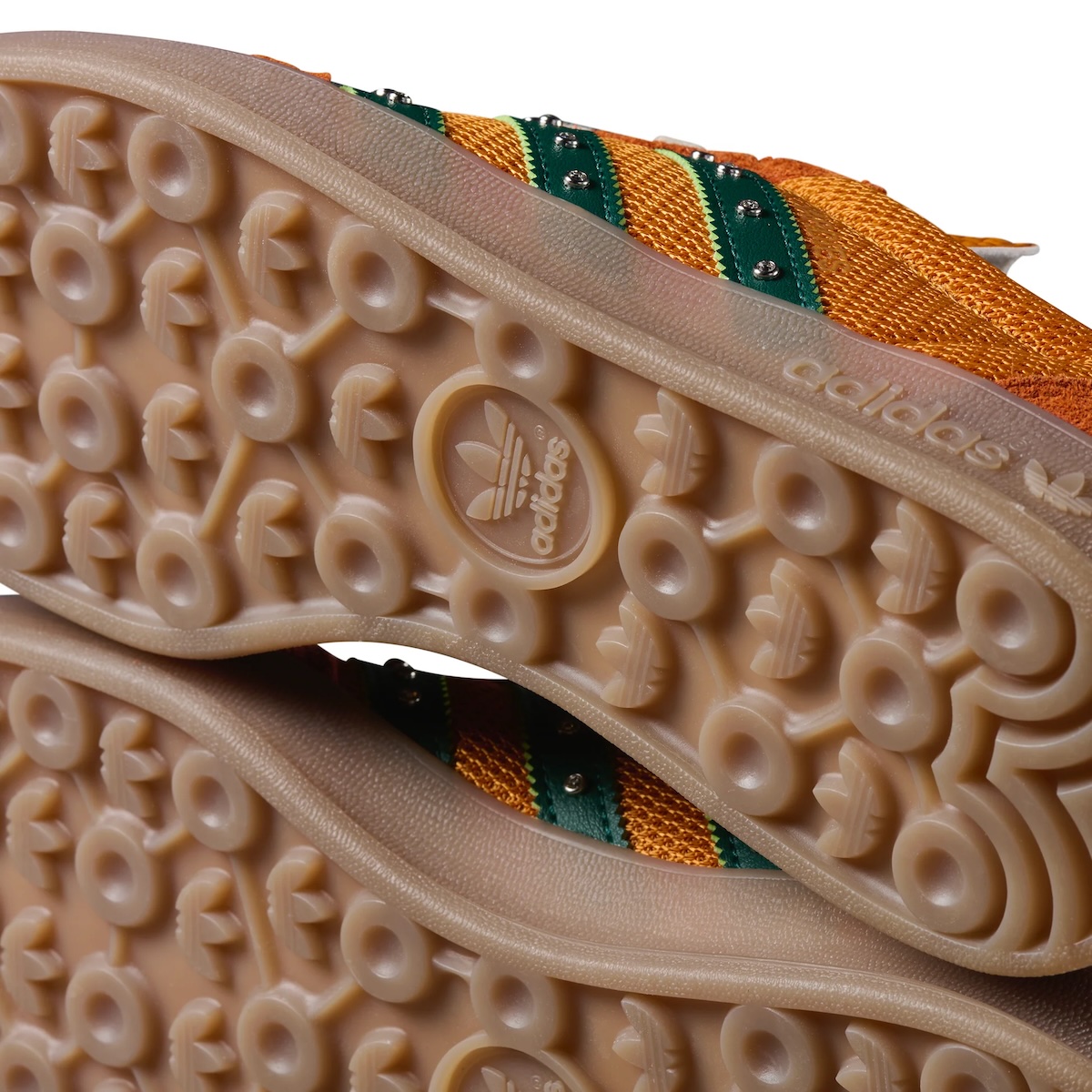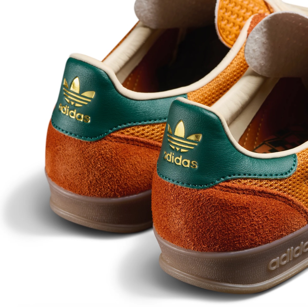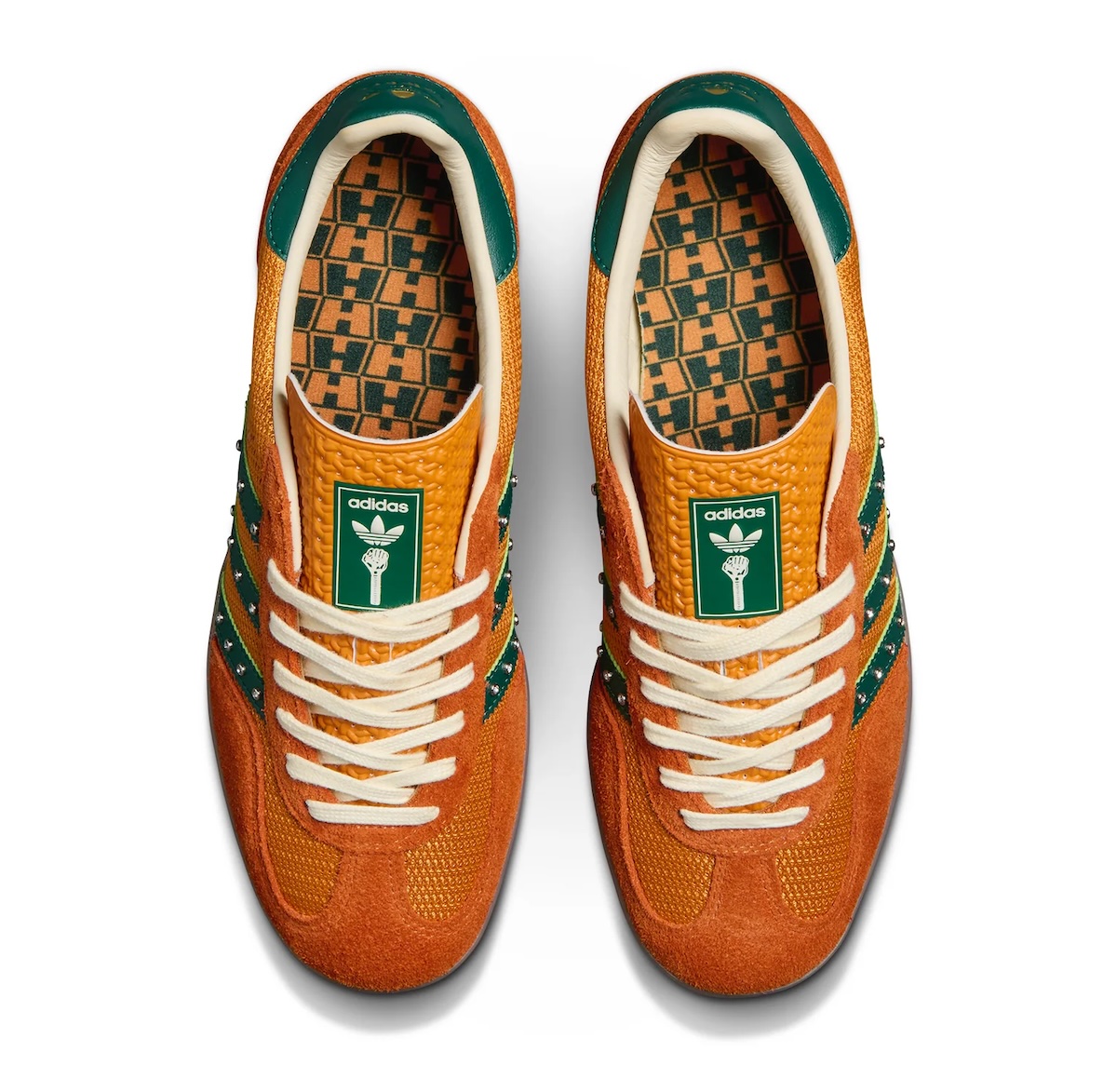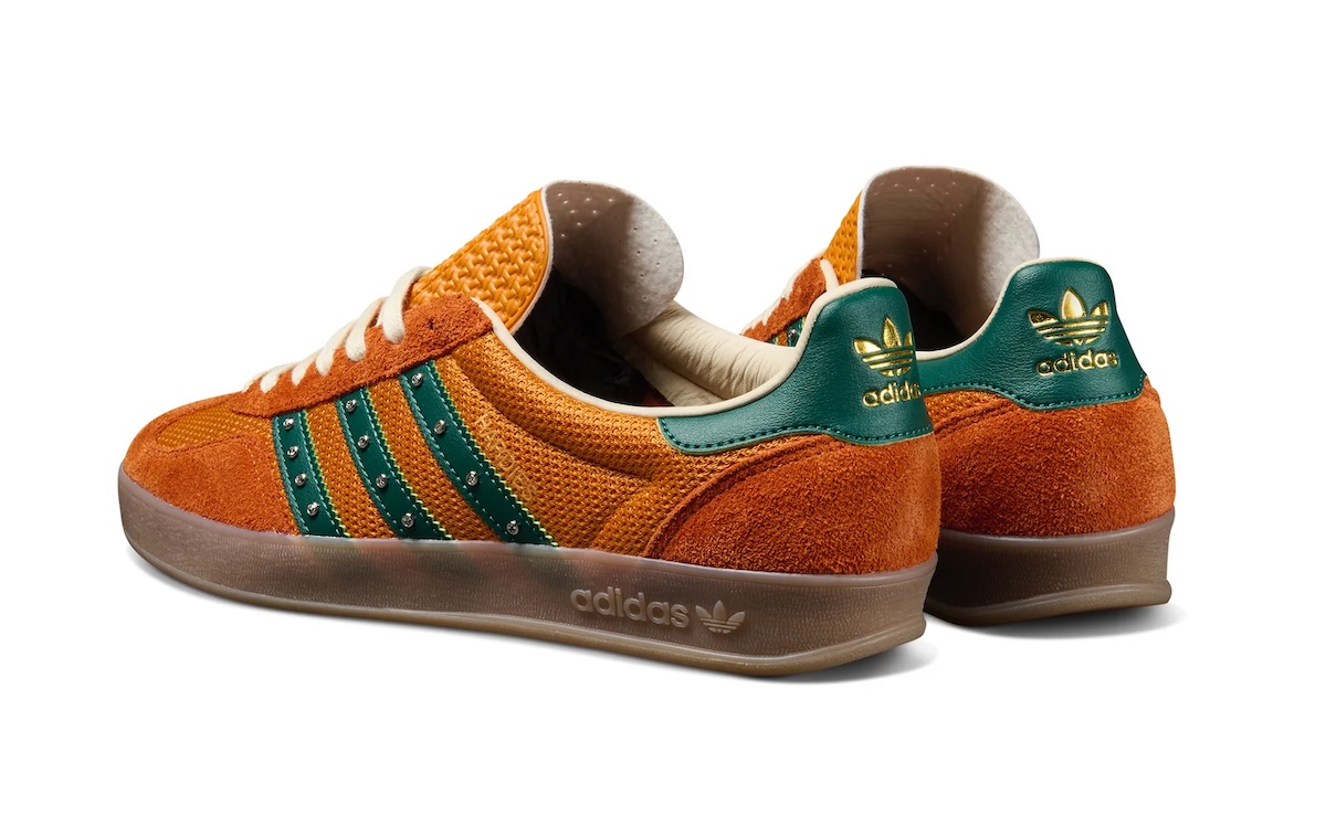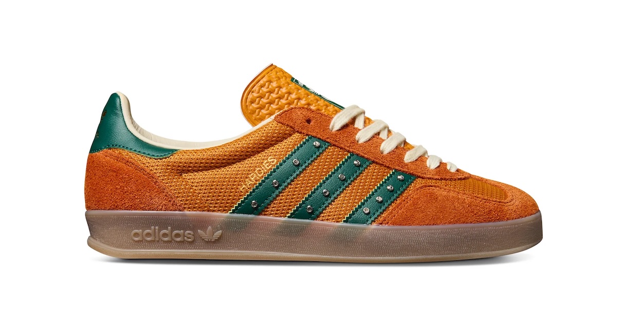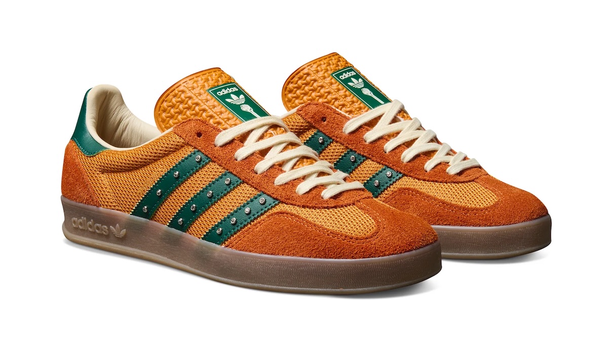 This new iteration comes dressed primarily in orange across the breathable mesh uppers and suede overlays, paired with forest green accents on the tongue, heel panels, and leather side stripes. This marks the second colorway of the Hardies adidas Gazelle to drop, following the release of the white/blue edition in March.