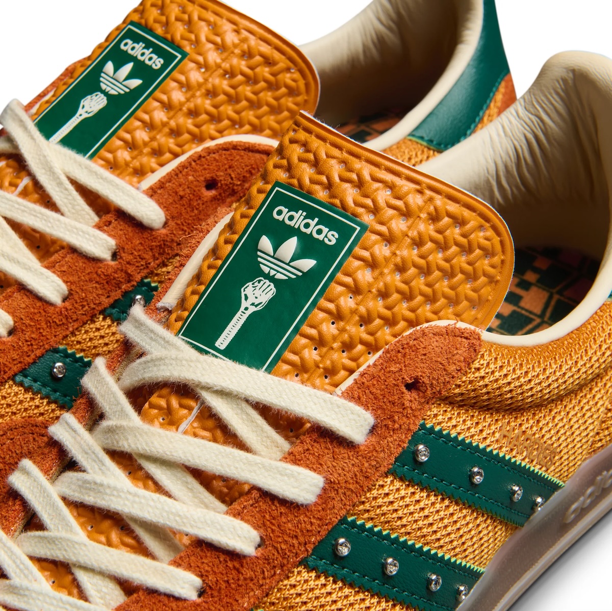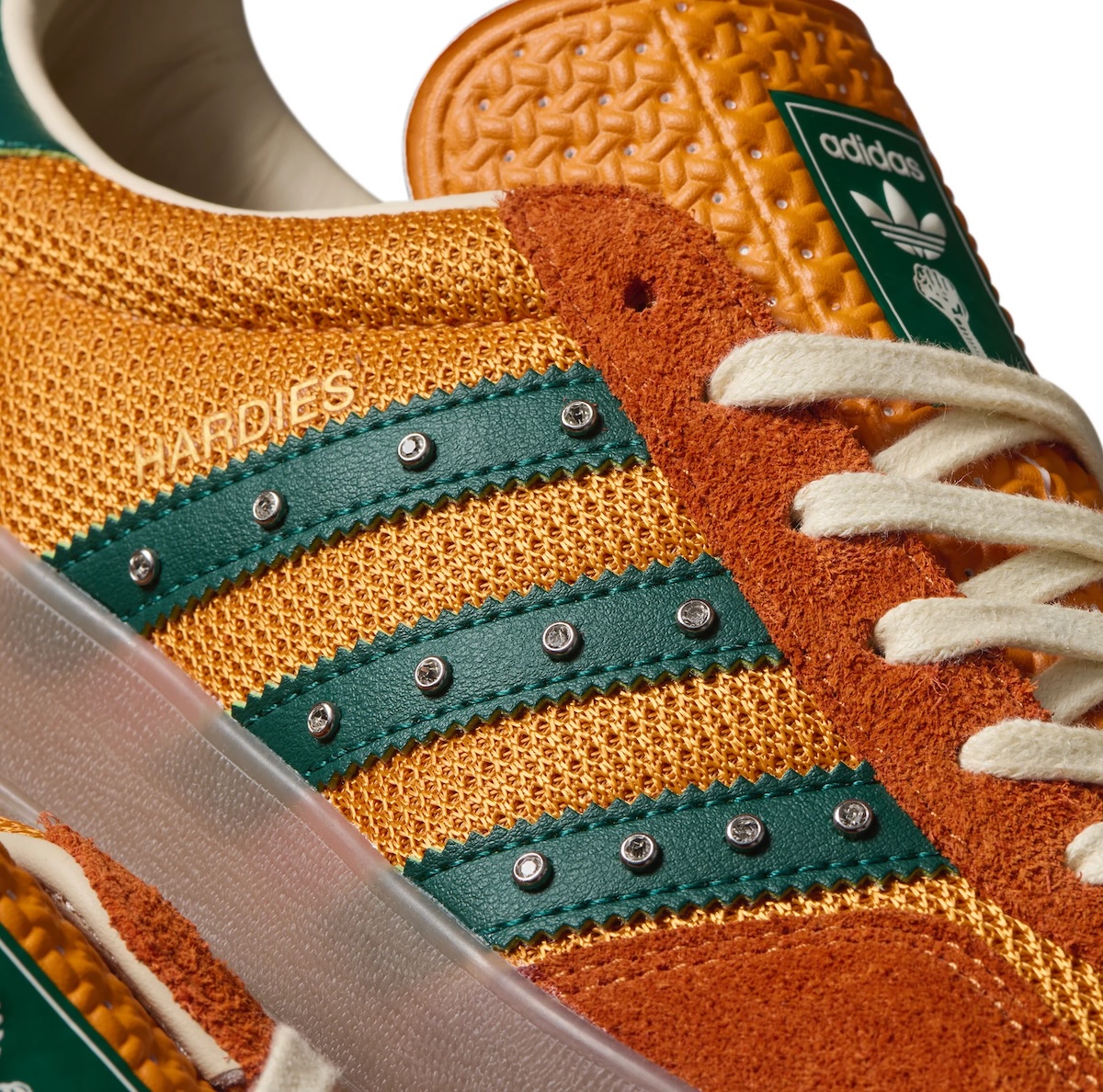 The Hardies NYC x adidas Gazelle “Rustic Orange” is now available on adidas.com, the Hardies NYC website, and at select retailers such as Feature. Check them out below.