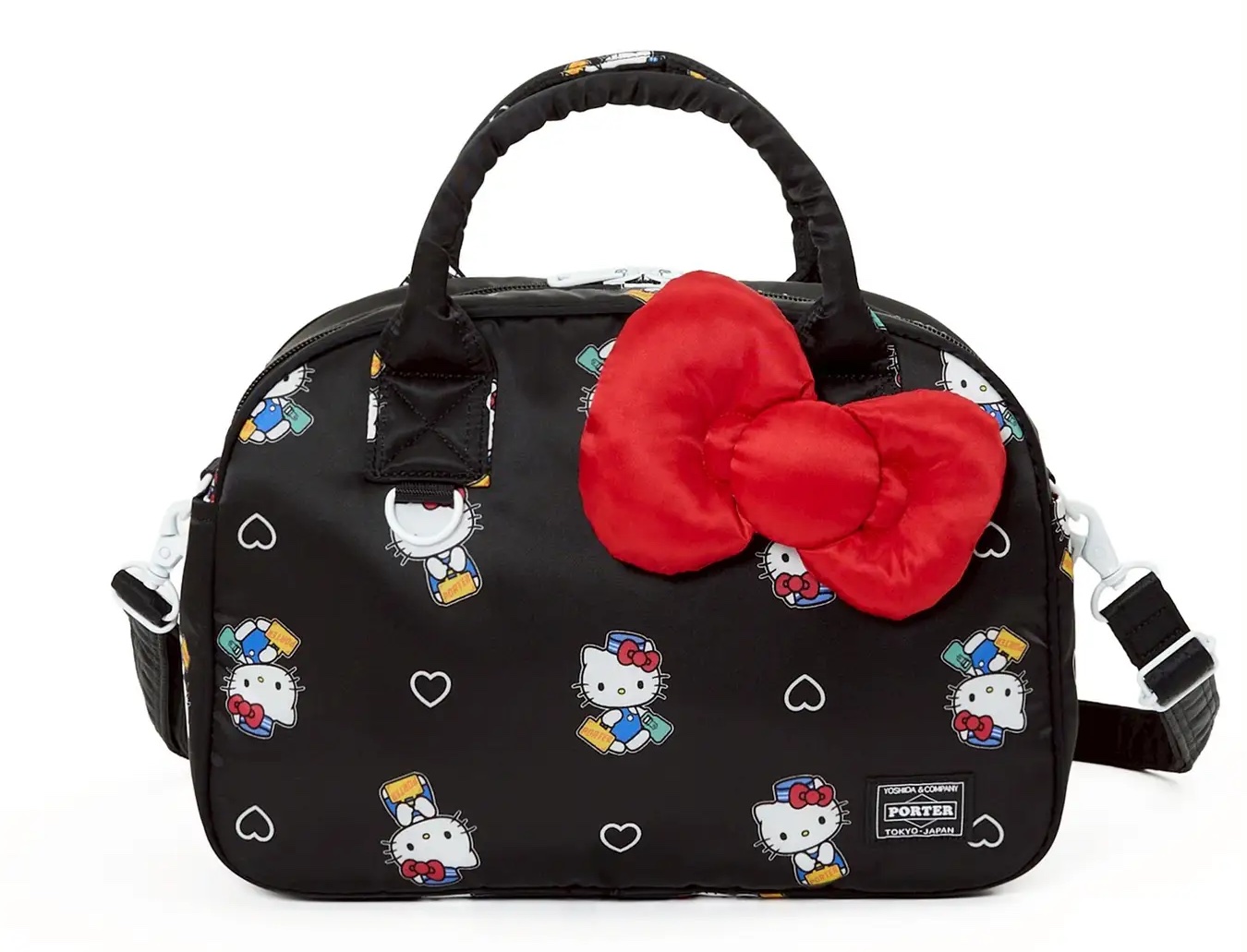 Marking the 15th project of Yoshida & Co.’s 90th anniversary celebration, the collection spans bags, wallets, a Hello Kitty plush toy, tees, key charms, and a sticker pack. Ducksacks, duffels, sackpacks, and wallets arrive in black and red, constructed from glossy nylon and detailed with heart motifs. Each piece features an original design of Hello Kitty dressed in a sailor outfit and wearing her own Porter bag, while a co-branded red ribbon charm accompanies each bag.