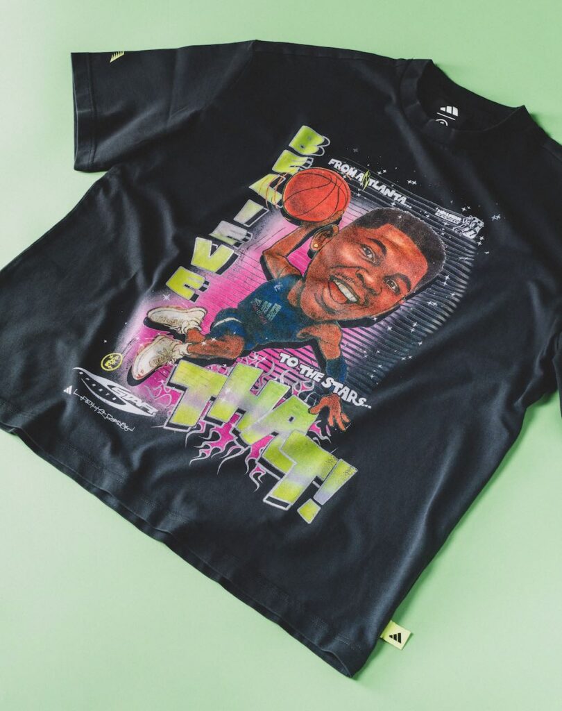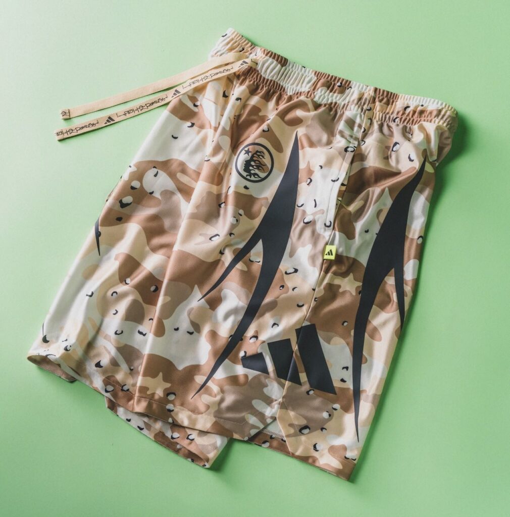The drop will also include an assortment of apparel pieces, such as basketball shorts with a matching camo print, a gray hoodie, and a graphic tee with a big-head cartoon version of Edwards.