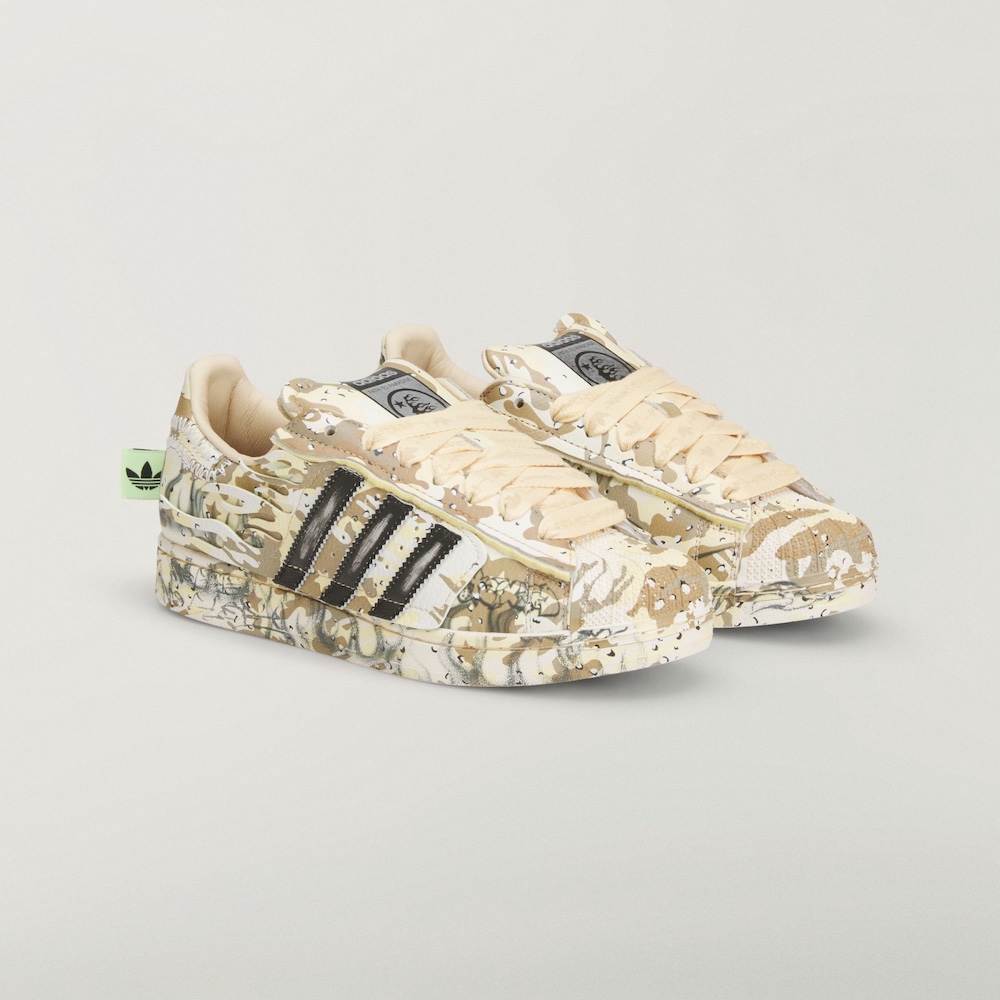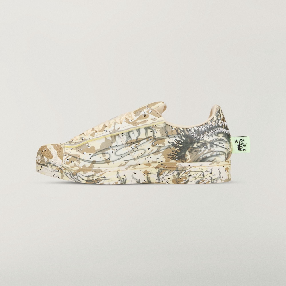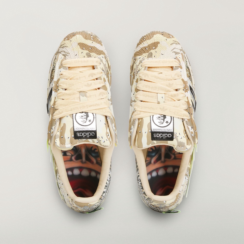 The shoe will drop as part of adidas’ NBA All-Star Weekend lineup alongside a Hellstar x adidas Superstar, complete with an all-over camo print and a distressed Three Stripes logo. Details from the duo’s first Superstar collaboration are present—flame-shaped overlays and a screaming-face graphic on the medial heel. Lastly, Hellstar branding is featured on the tongue and neon heel tag. Additional lace options include brown, highlighter green, and light green.
