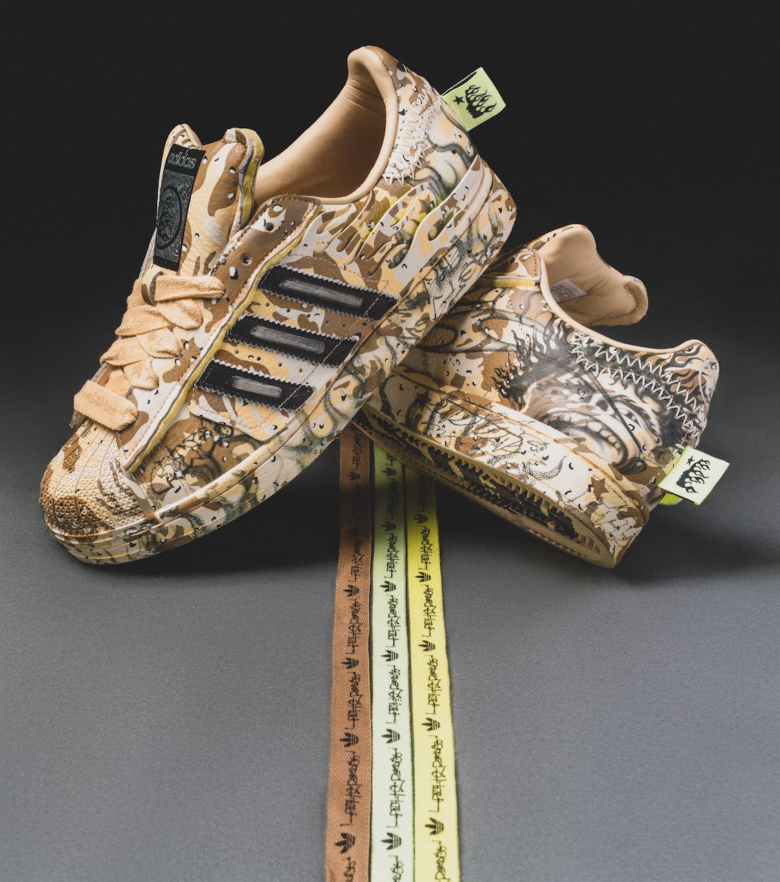 The shoe will drop as part of adidas’ NBA All-Star Weekend lineup alongside a Hellstar x adidas Superstar, complete with an all-over camo print and a distressed Three Stripes logo. Details from the duo’s first Superstar collaboration are present—flame-shaped overlays and a screaming-face graphic on the medial heel. Lastly, Hellstar branding is featured on the tongue and neon heel tag. Additional lace options include brown, highlighter green, and light green.