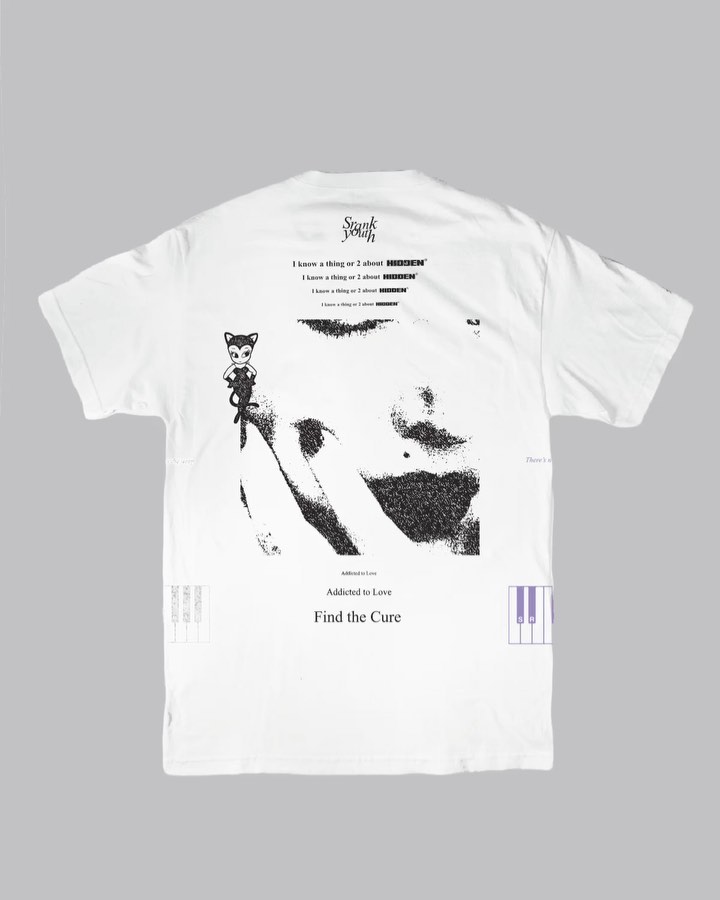 Signature Hidden Characters motifs return, such as the cat character seen in their Home Goods collection from Summer 2018. You can also find a few solid phrases like “I know a thing or 2 about Hidden” and “Addicted to Love/Find the Cure” strategically placed throughout the design.