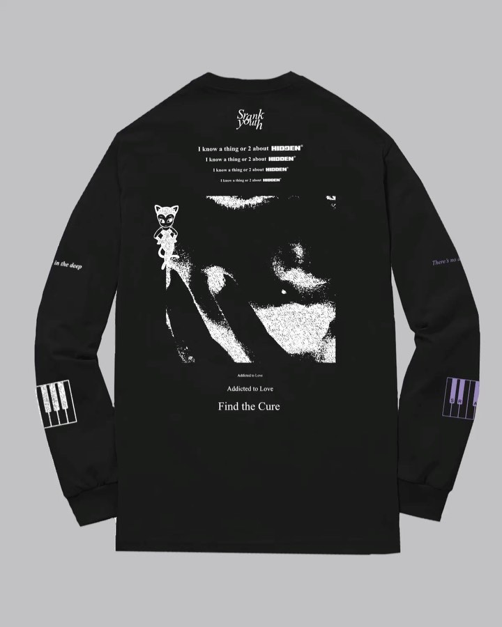 From what we can tell so far, the capsule will include long sleeve and short sleeve tees. From the front view, the “Srank Youth” logo is delicately stamped on the top right corner and the left and right side of the shirts have “there’s no doubt” and “you’re in the deep” respectively. Purple and 3M reflective piano keys also appear on each side.