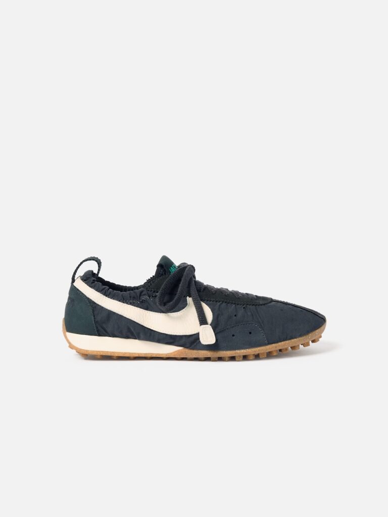 Jacquemus’ iteration of the Nike Moon Shoe made its debut at the brand’s “La Croisière” Spring 2025 runway show during Paris Fashion Week. Blending the original model’s racing origins with a modern ballet aesthetic, the shoe features a low-profile nylon build with circular perforations for ventilation throughout the upper. Jacquemus added its own branding to the tongue tags, as well as the leather aglets seen on the laces of all previous Jacquemus x Nike footwear collabs. The pair debuted by Jacquemus is one of three colorways expected to release, featuring a yellowed upper for a vintage look.