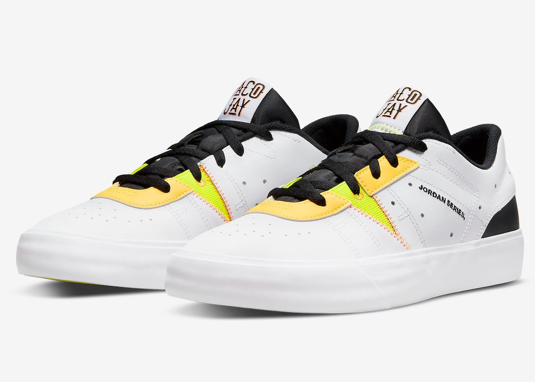 The Jordan Series “Taco Jay” receives a more subtle makeover, with a mix of real and synthetic leather on the upper in white, while Citron Pulse and Atomic Green are matched with black detailing to complete the look. The collection is rounding out by “Taco Jay” tees and hoodies.