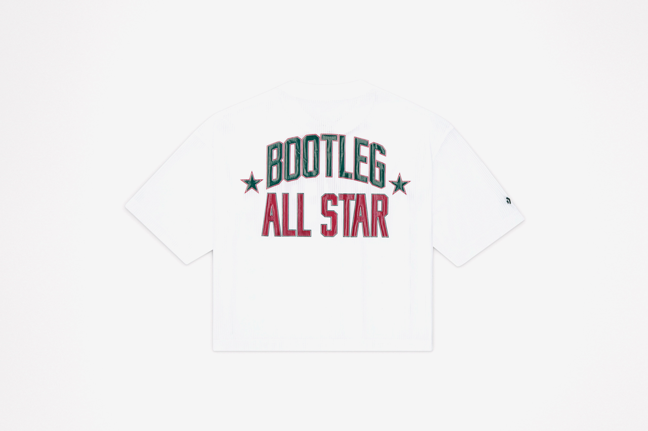 Apparel in the collection includes a hoodie and tie-dye tee with groovy soul-inspired graphics. Another tee reads “Converse Freshgoods” on the front and “Bootleg All-Star” on the back in throwback font. Additionally, track pants come in green with a purple stripe and orange accents. Accessories include a translucent duffel bag with “Converse Freshgoods” branding.