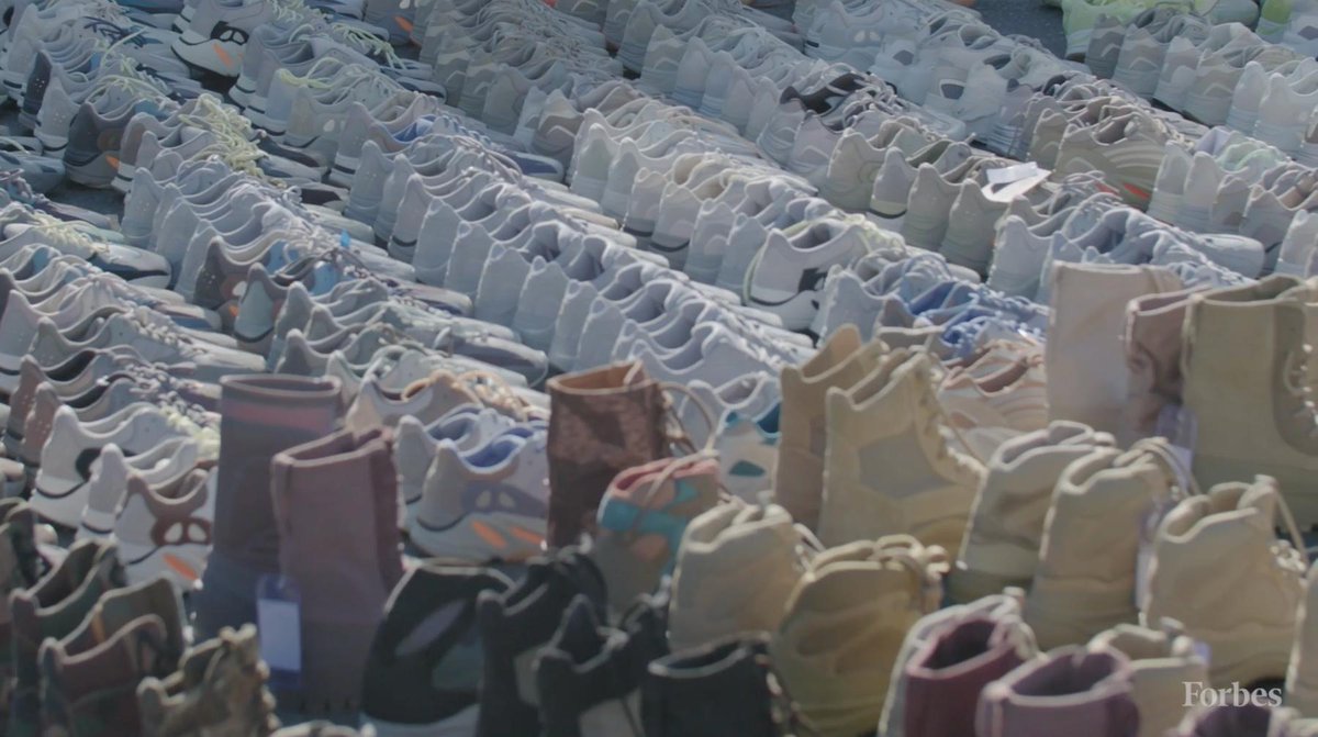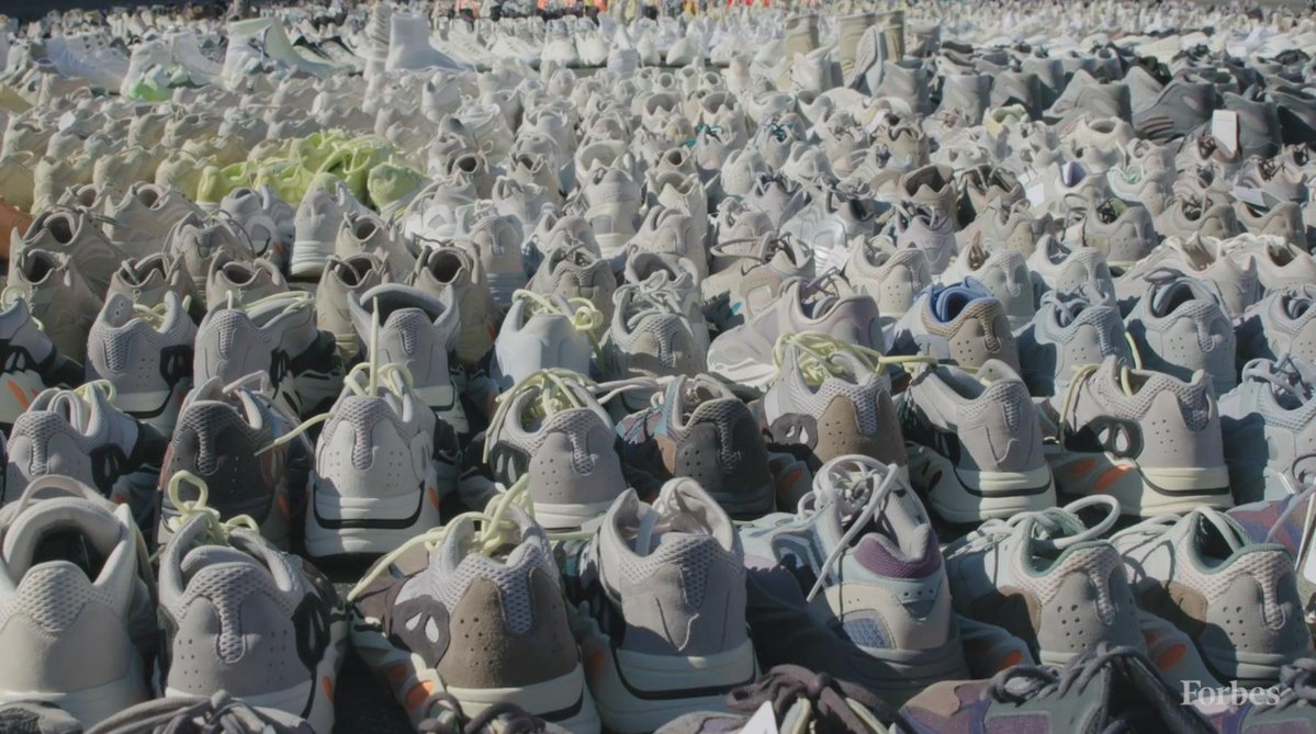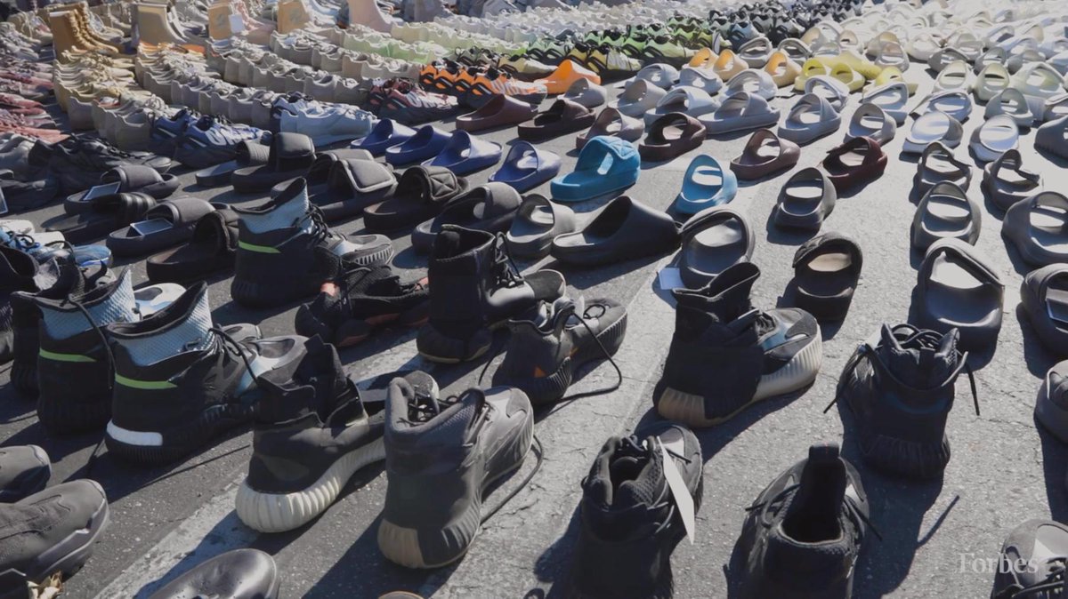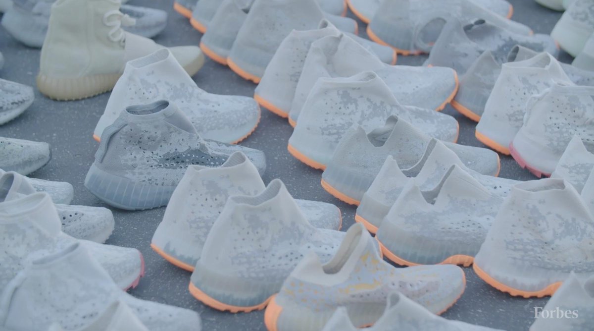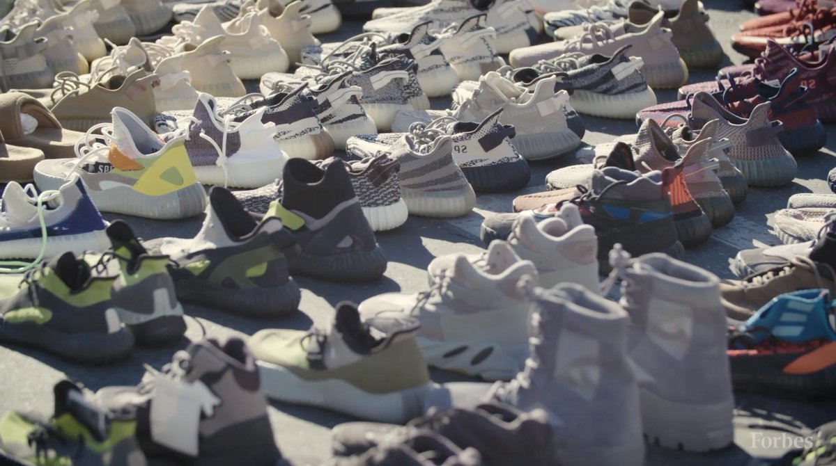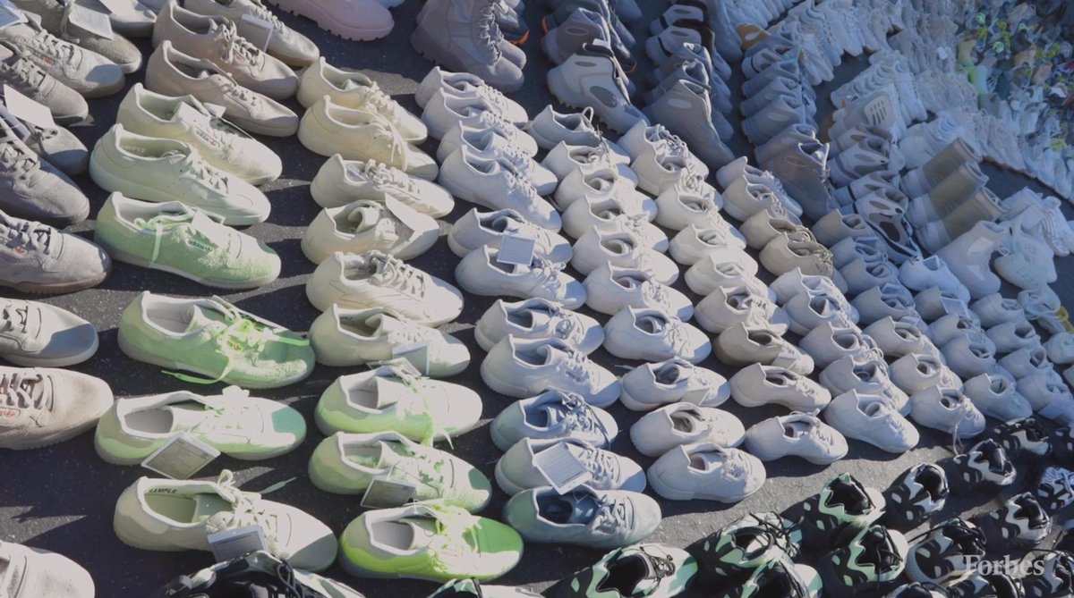 Kanye shares these stories with Forbes’ Zack O’Malley Greenburg while out in the parking lot behind Kanye’s office. In this parking lot, Kanye and his team laid out around a thousand of YEEZY prototypes, including variants of the popular 350s and the unreleased Yeezy basketball shoe. Never before seen silhouettes are mixed in with prototypes of the YEEZY Powerphase, the YEEZY 451, YEEZY Slides, and more. Watch the Forbes video below and scroll down for additional screen caps.