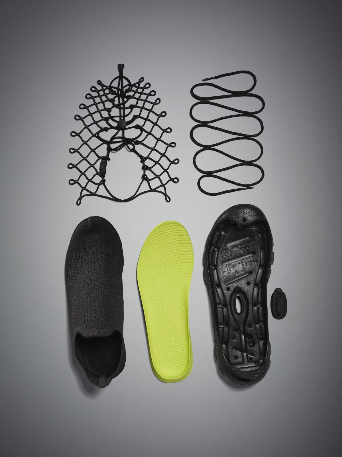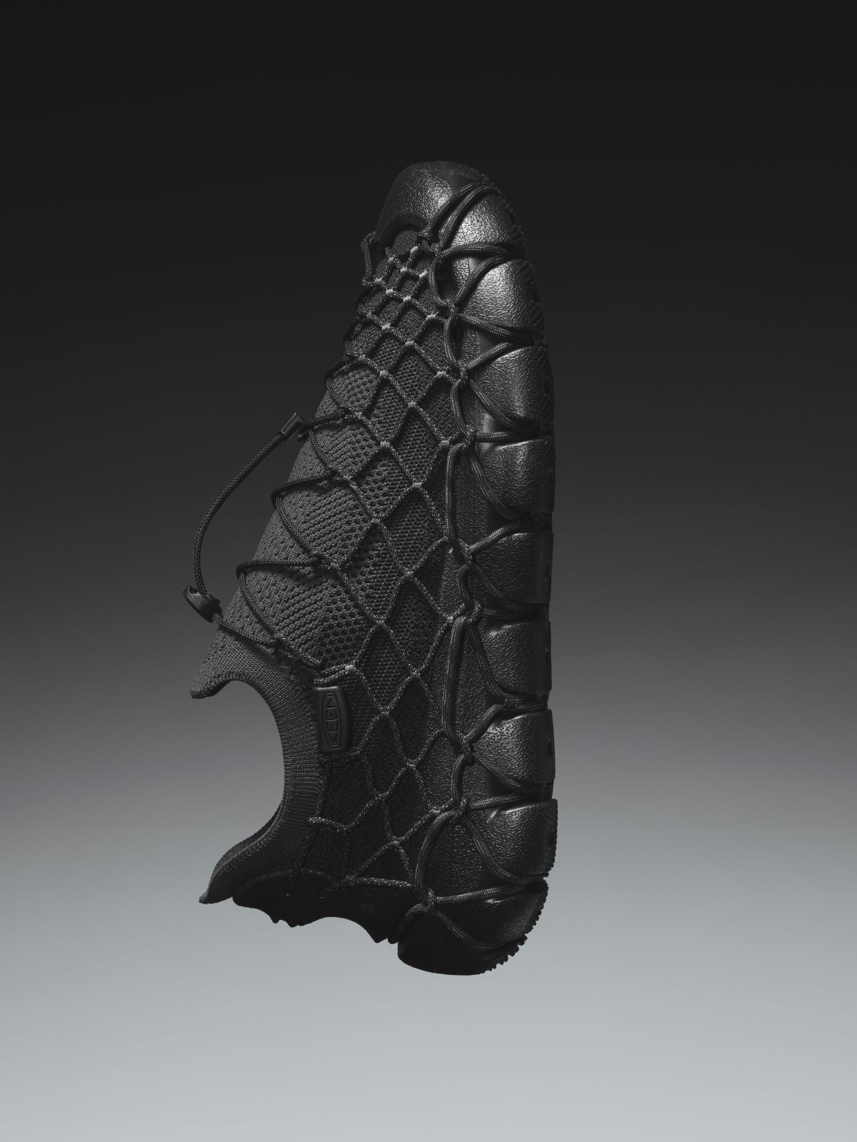 Rather than relying on traditional adhesives, the UNEEK 360 is held together through a cord-based assembly. By removing glue from the equation, KEEN eliminates solvents commonly used in footwear manufacturing, making this the brand’s first solvent-free shoe. The sustainability story continues through the materials: the engineered knit upper and cords are made from recycled P.E.T. plastics derived from recycled plastic bottles. The bungee cord and lace-lock toggle system allows for quick adjustments and a secure fit.