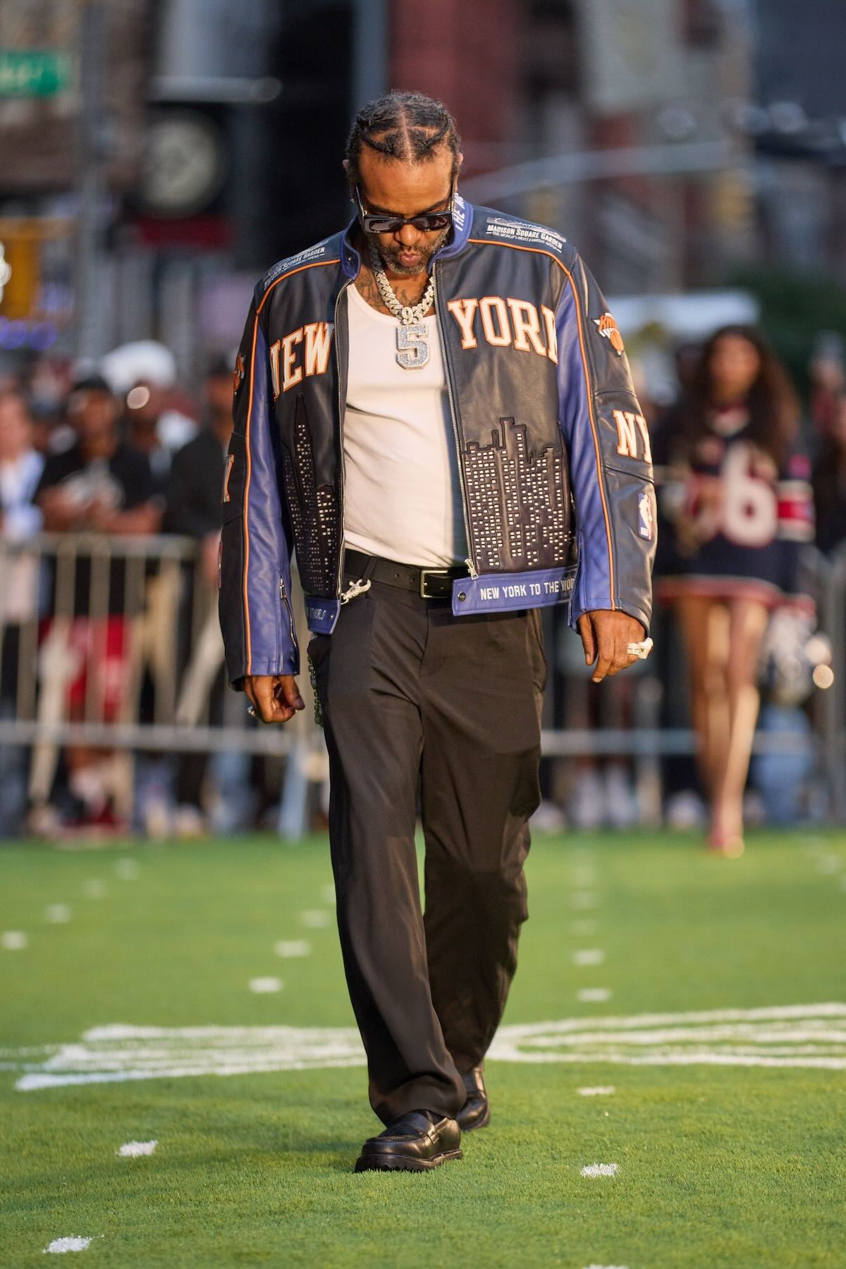 The show concluded with a performance by rappers Gashi and Jimi Banks, who also star in the collection’s campaign alongside George the Messiah, Lori Hirshleifer, Danny “Cugine” Mondello, Jordan Clarkson, Jack Coyne, Nigel Sylvester, Mark Brucato, John Leguizamo, Shawn “Pecas” Costner, Miss Velvet, Malik Nabers, Chris Distefano, Sophia Chang, Mark Iacono, and Noreaga.