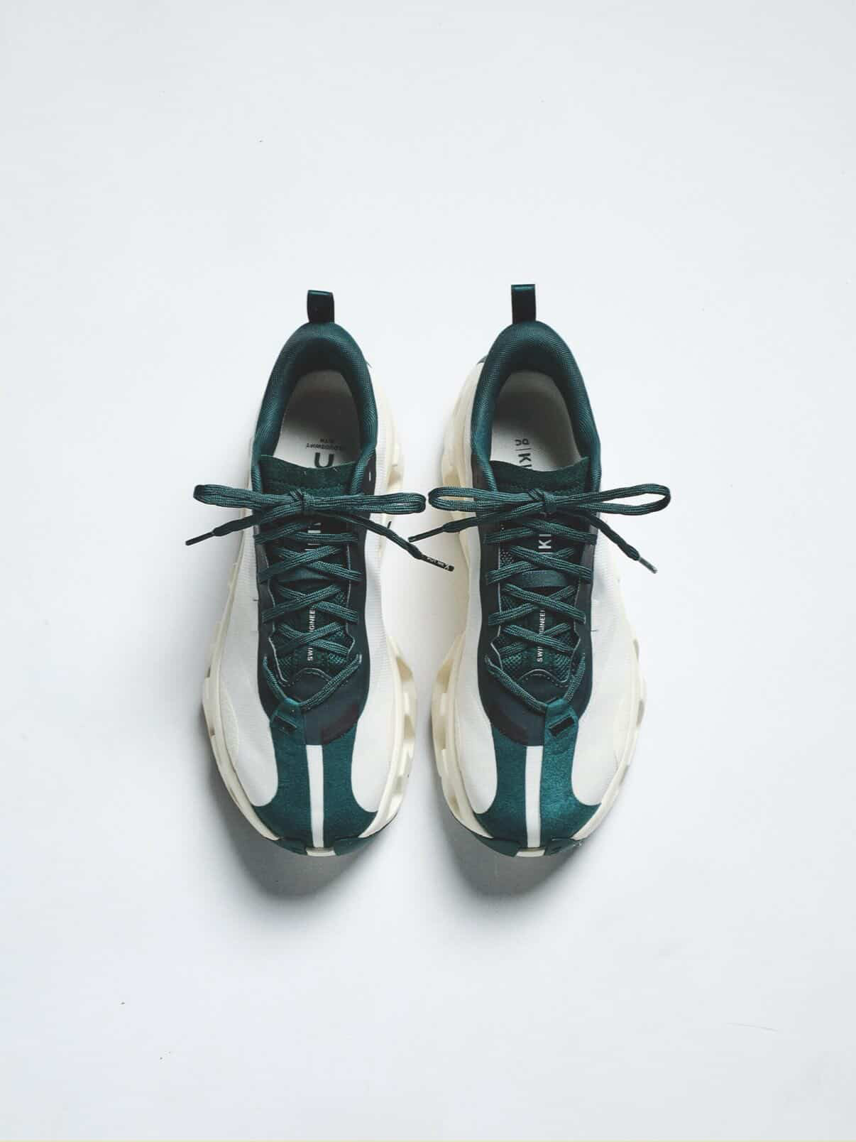 Dubbed K-Tech 1 and K-Tech 2, the shoes feature mesh uppers with synthetic suede overlays, custom co-branded lockups throughout, Cloudswift tooling underfoot, and a Kith Monogram treaded outsole. Both silhouettes also feature CloudTec cushioning and a Helion foam midsole. The K-Tech 1 arrives in “Black,” “Tofu,” and “Sea Moss” colorways, while the K-Tech 2 comes in “White & Real Teal,” “Thorn & Ganache,” and “Spirulina & Barley” options.