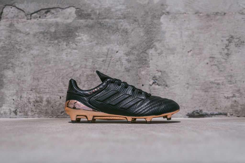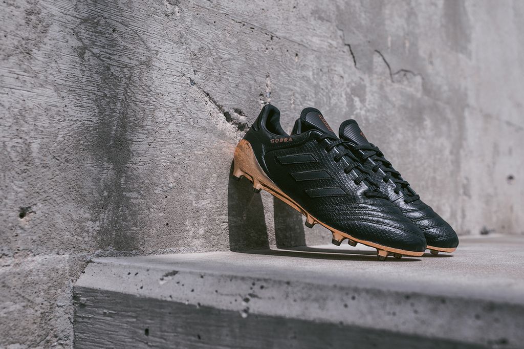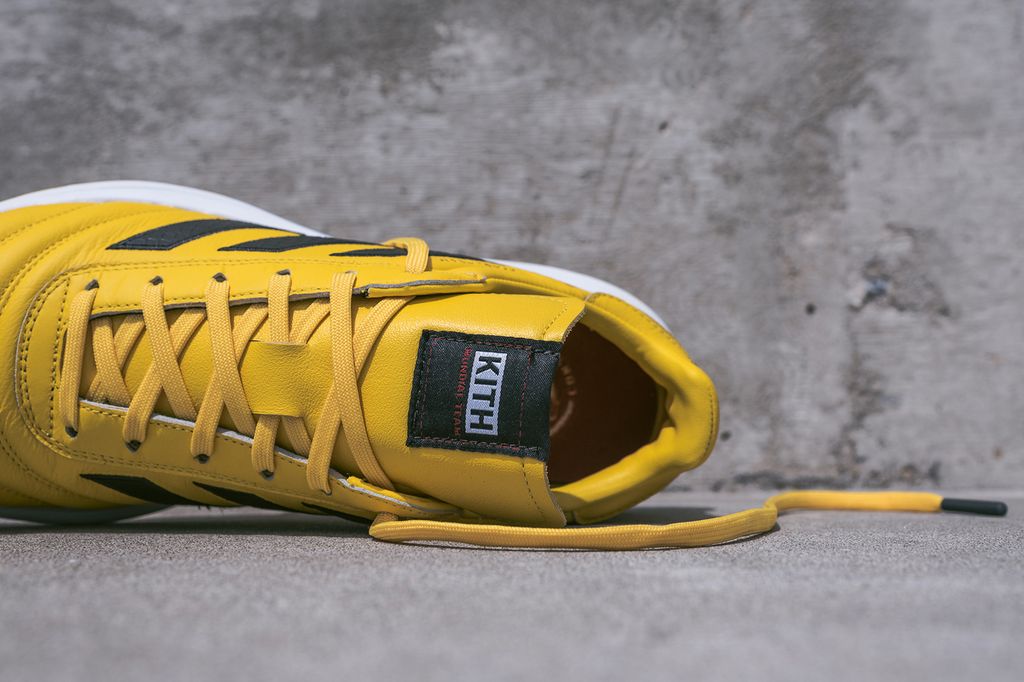 The Kith Cobras receive the Copa styles, which include the Copa Mundial 17 Cleat ($300), the Copa Mundial Turf Trainer ($140), and the Copa Mundial 17 UltraBOOST ($220). Both the Turf and UltraBOOST models are completely new designs being introduced for the first time through this collection, as the lauded Copa Mundial 17 upper is equipped with turf and street midsoles. The cleat features a black snakeskin-embossed kangaroo leather upper atop a metallic rose gold foot plate. The turf trainer has a yellow kangaroo leather upper with snakeskin-embossed leather Three Stripes branding. This lightweight upper is adhered to an all-new performance EVA-cushioned midsole unit with a gum turf outsole.