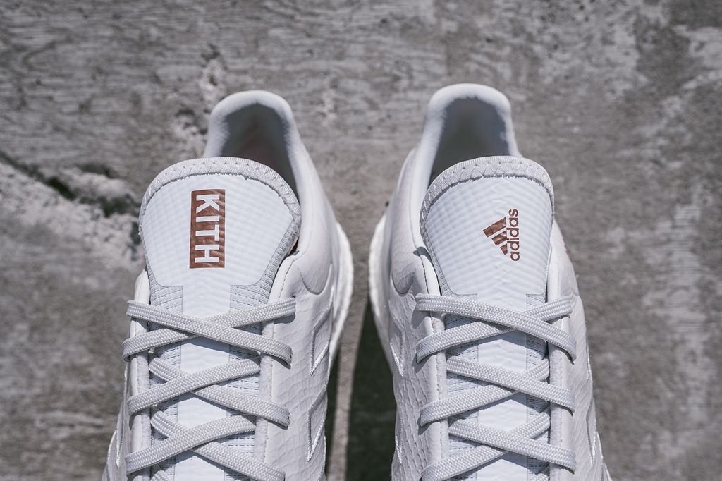 As for the Kith Flamingos, they receive the more disruptive ACE footwear, which is adidas Soccer’s more contemporary approach towards performance footwear. These three styles include the ACE 17+ Cleat ($300), the ACE Tango 17.1 Purecontrol Turf Trainer ($160), and the ACE 16+ Purecontrol UltraBOOST ($220). The cleat features a laceless Primeknit upper covered by Controlskin overlays for more grip, as well as a colorblocked toe design. The turf trainer supplements the ACE 17.1 Primeknit upper with a performance EVA-cushioned misdole and turf outsole. Lastly, the ACE 16+ Purecontrol laceless Primeknit upper with an all-white UltraBOOST midsole unit.