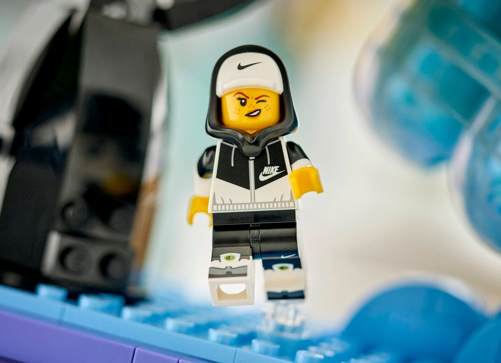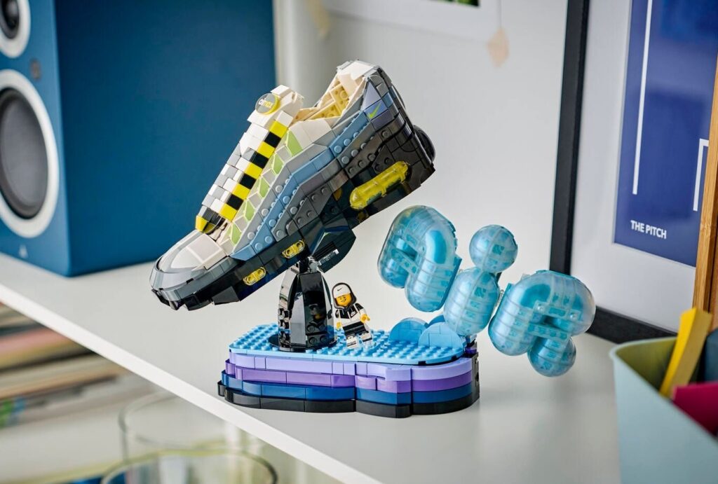 The LEGO x Nike Air Max 95 Brick Set is comprised of 1,213 pieces and recreates the original “Neon” Air Max 95 that started it all back in 1995. The wave-panel layering, the Volt hits, and the sculpted silhouette are all brought to life in brick form. What makes this more than a display piece is the level of detail. There’s a custom stand with a hidden storage compartment, complete with a translucent “Air” bubble logo that nods to the visible Air units, and a Nike-branded minifigure included for good measure.