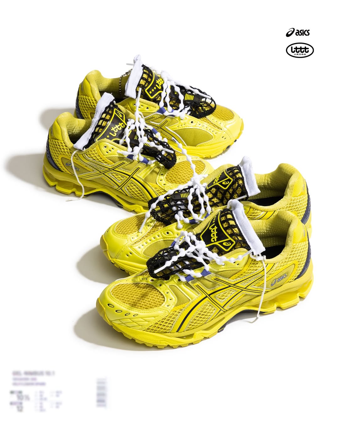The LTTT GEL-NIMBUS 10.1 is a modified version of the bright yellow Kelp/Lemon Spark in-line colorway, remixed with ping pong net overlays that cover the tongues. The shoe is accompanied by a limited series of vintage table tennis jerseys which LTTT has collected over the years and reimagined with quadruple ASICS logo branding and Japanese text that translates to Little Tokyo Table Tennis (小東京卓球). Rounding out the collection are hats, compression sleeves, a beanie, and more.