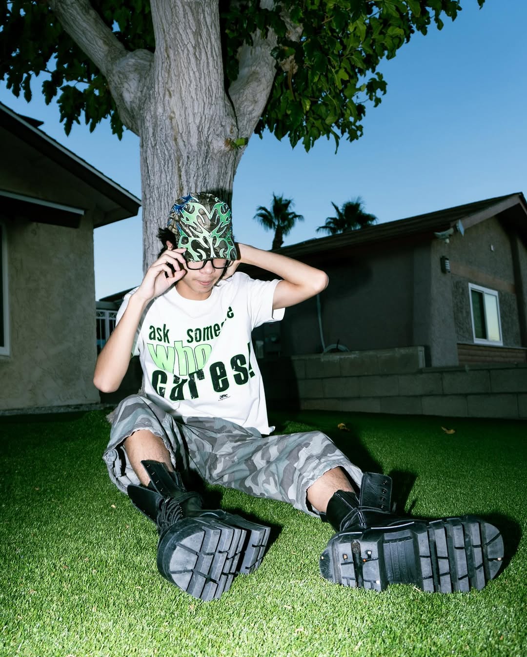 Founder JB describes the brand’s latest drop as a form of satire, blending nods to blue-collar life and manual labor with reflections on the “meta” version of ourselves—where digital presence begins to overtake real-life identity.