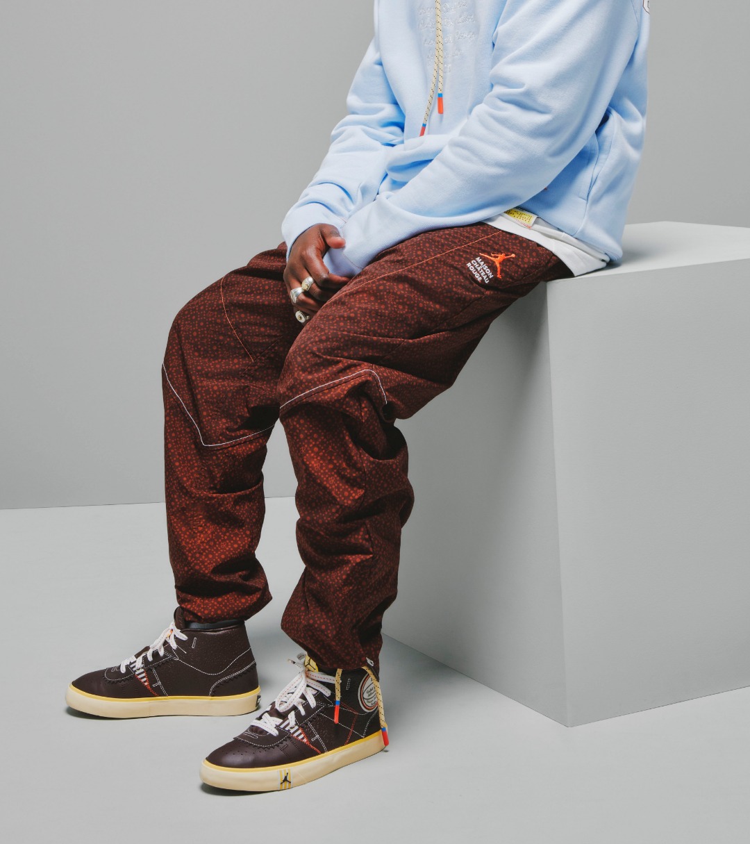Youssouf Fofana, co-founder of the Parisian fashion brand, explains that the Jordan collaboration is a bridge between Parisian and African culture. Prints used on the Air Jordan 2, the two colorways of the MCR x Jordan Series Mid, and the apparel are inspired by traditional African commemorative loincloths. The debossed print that is dug into the leather on the footwear nods to the traditional practice of scarification.