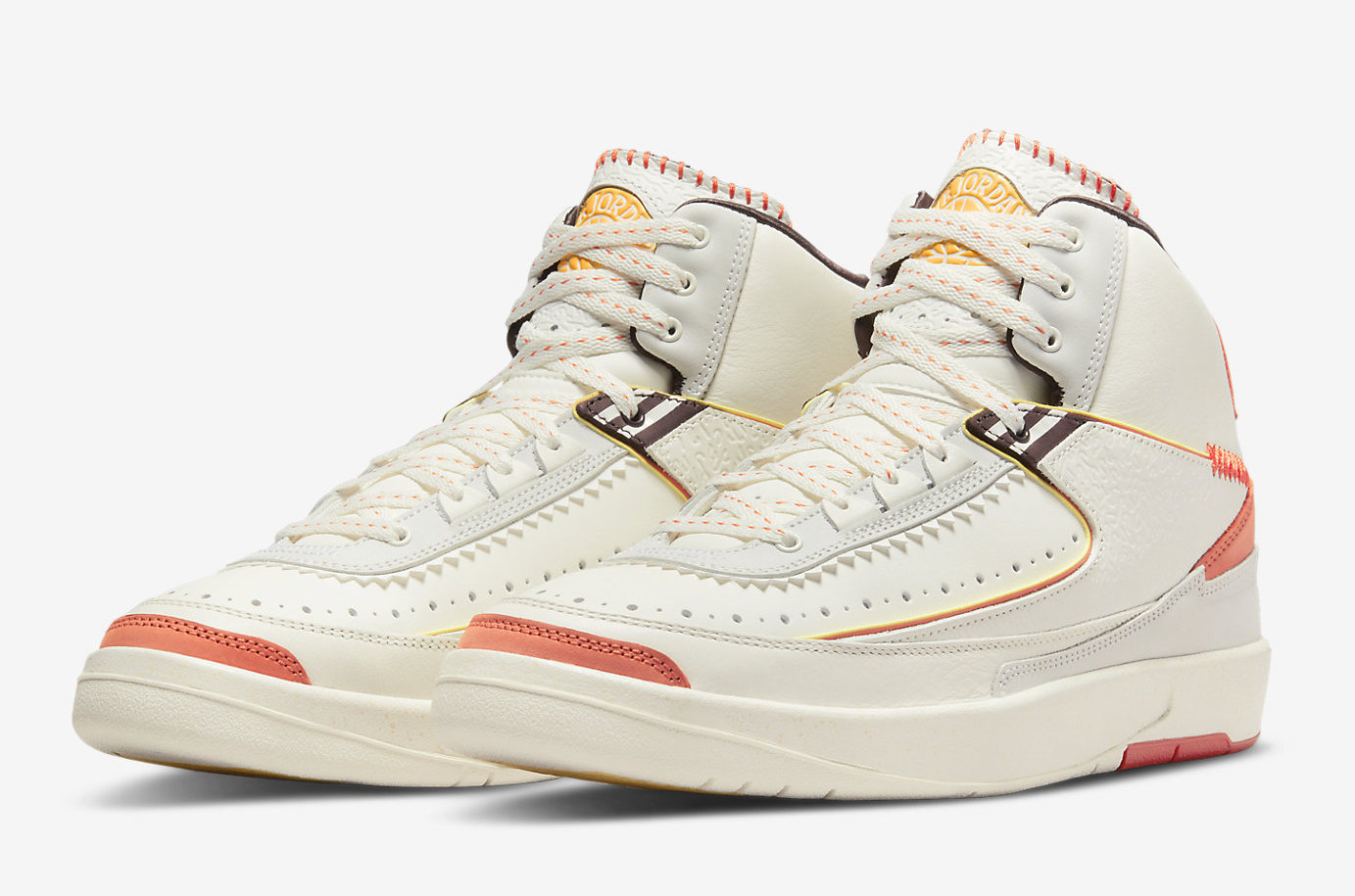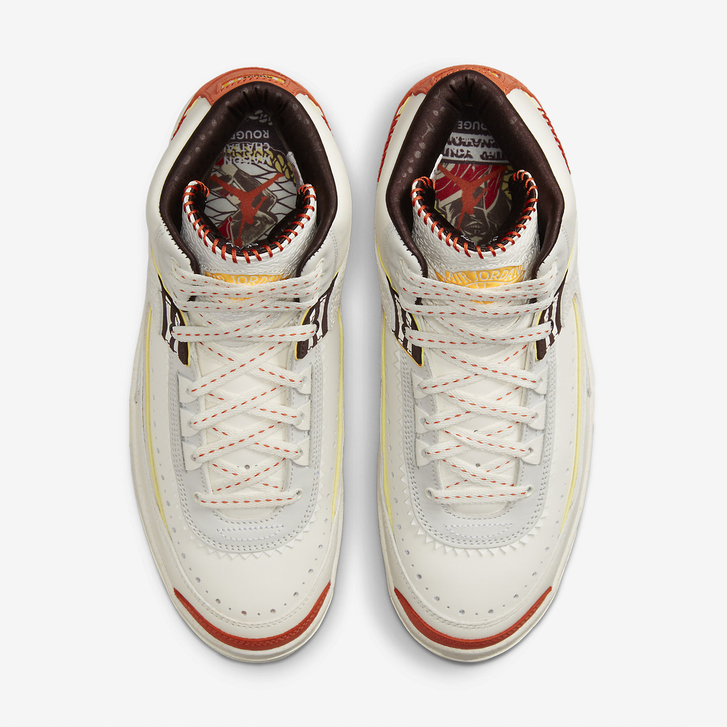 The hits of orange on the Air Jordan 2 are inspired by the “Shattered Backboard” color scheme, nodding to how Michael Jordan, as a 22-year-old youth, shattered a backboard during an exhibition game in Italy. Brogue detailing adds sophistication to each of the footwear styles, designed so that Michael Jordan could pair them with a suit if he chose to do so. Each pair also features graphic insoles of Michael Jordan as another nod to the GOAT.