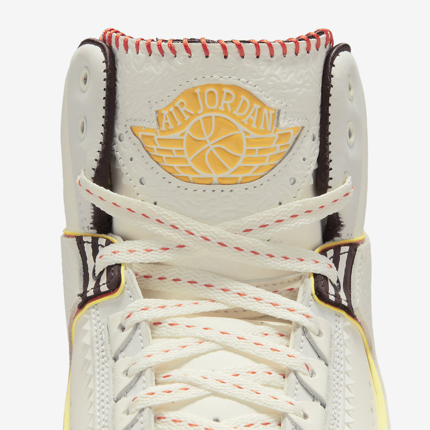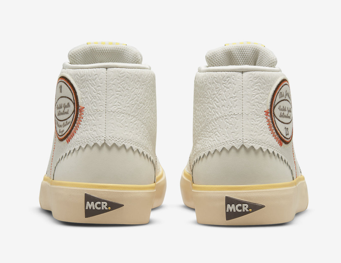 Youssouf Fofana, co-founder of the Parisian fashion brand, explains that the Jordan collaboration is a bridge between Parisian and African culture. Prints used on the Air Jordan 2, the two colorways of the MCR x Jordan Series Mid, and the apparel are inspired by traditional African commemorative loincloths. The debossed print that is dug into the leather on the footwear nods to the traditional practice of scarification.