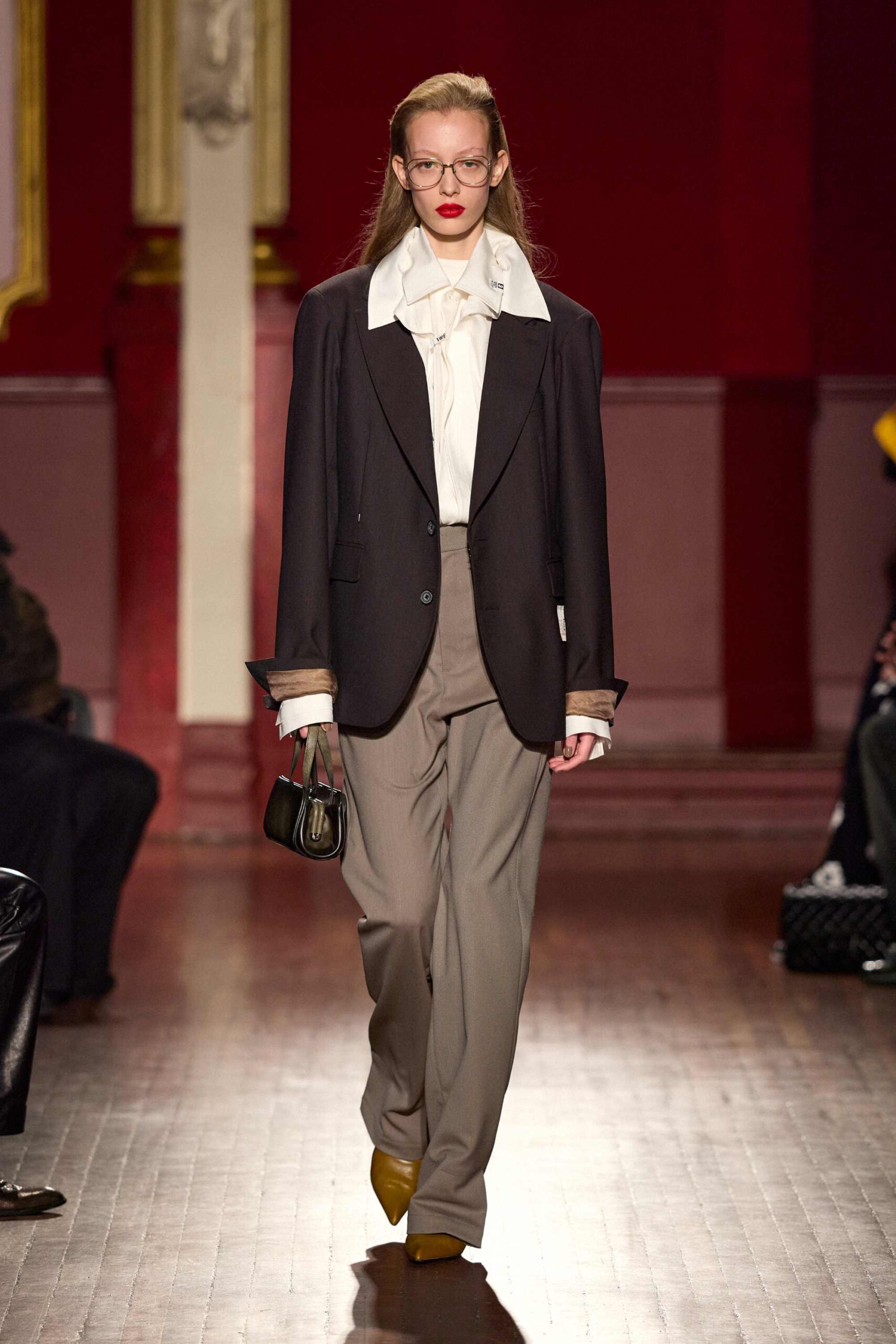 Footwear continues to play a central role, referencing Mihara’s origins while aligning with the season’s themes. Shoes appear grounded and wearable yet slightly exaggerated in shape, reinforcing the idea of softened perception without breaking from practicality.