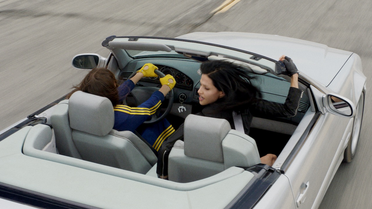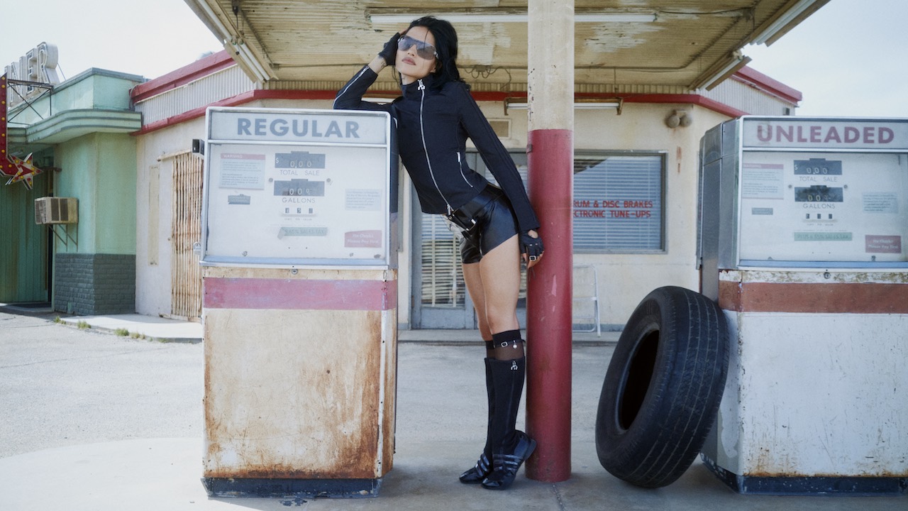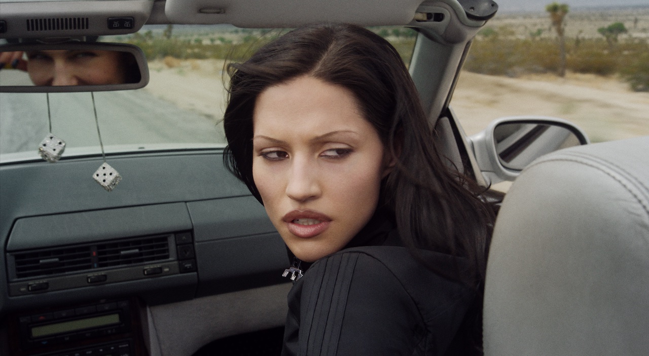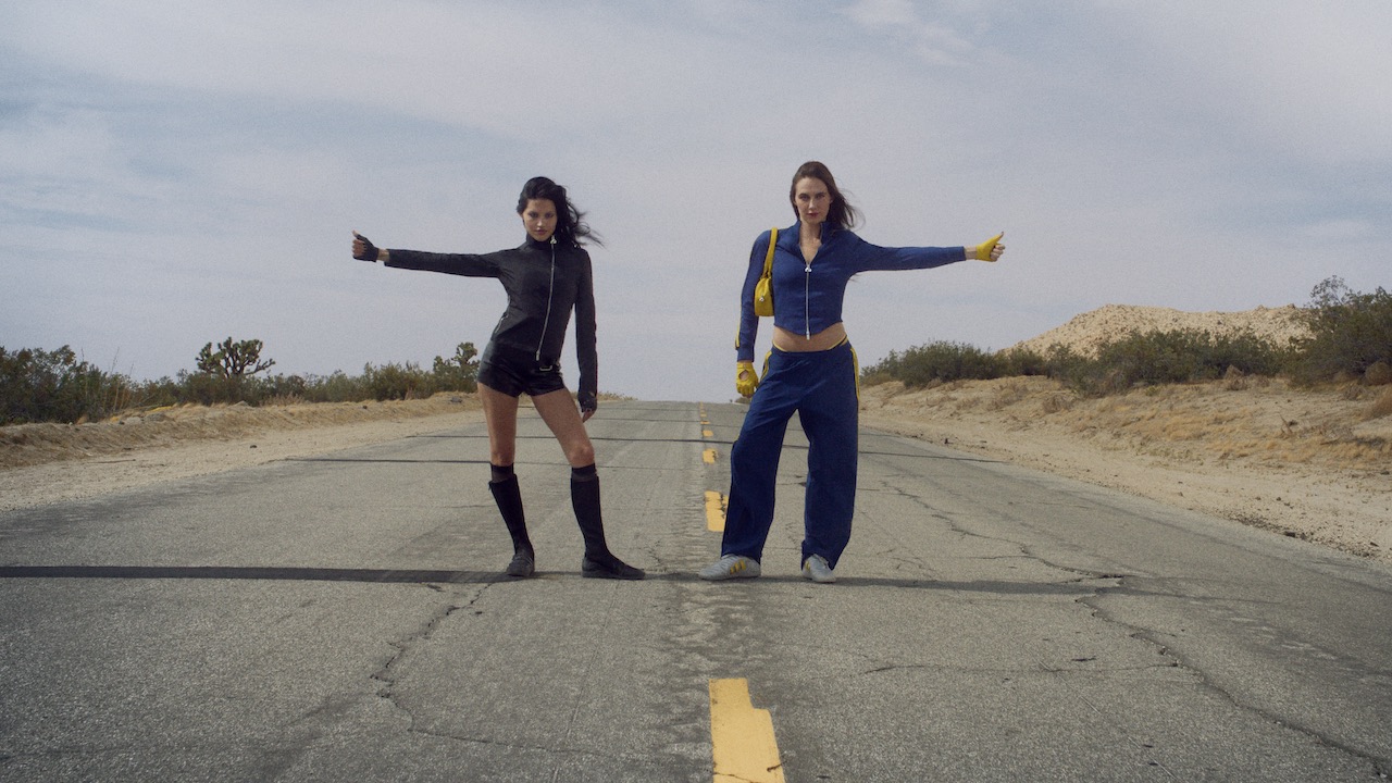 The accompanying campaign features Gabbriette, Devon Lee Carlson, and founder Alexia Elkaim as they traverse a desert landscape in a vintage car, highlighting Miaou’s rebellious spirit in a Hollywood Western-style setting. The models then ditch their automobile and run off at full speed, wearing the Mei Elite and Miaou Boot silhouettes — only to be picked up by Elkaim in a new ride.