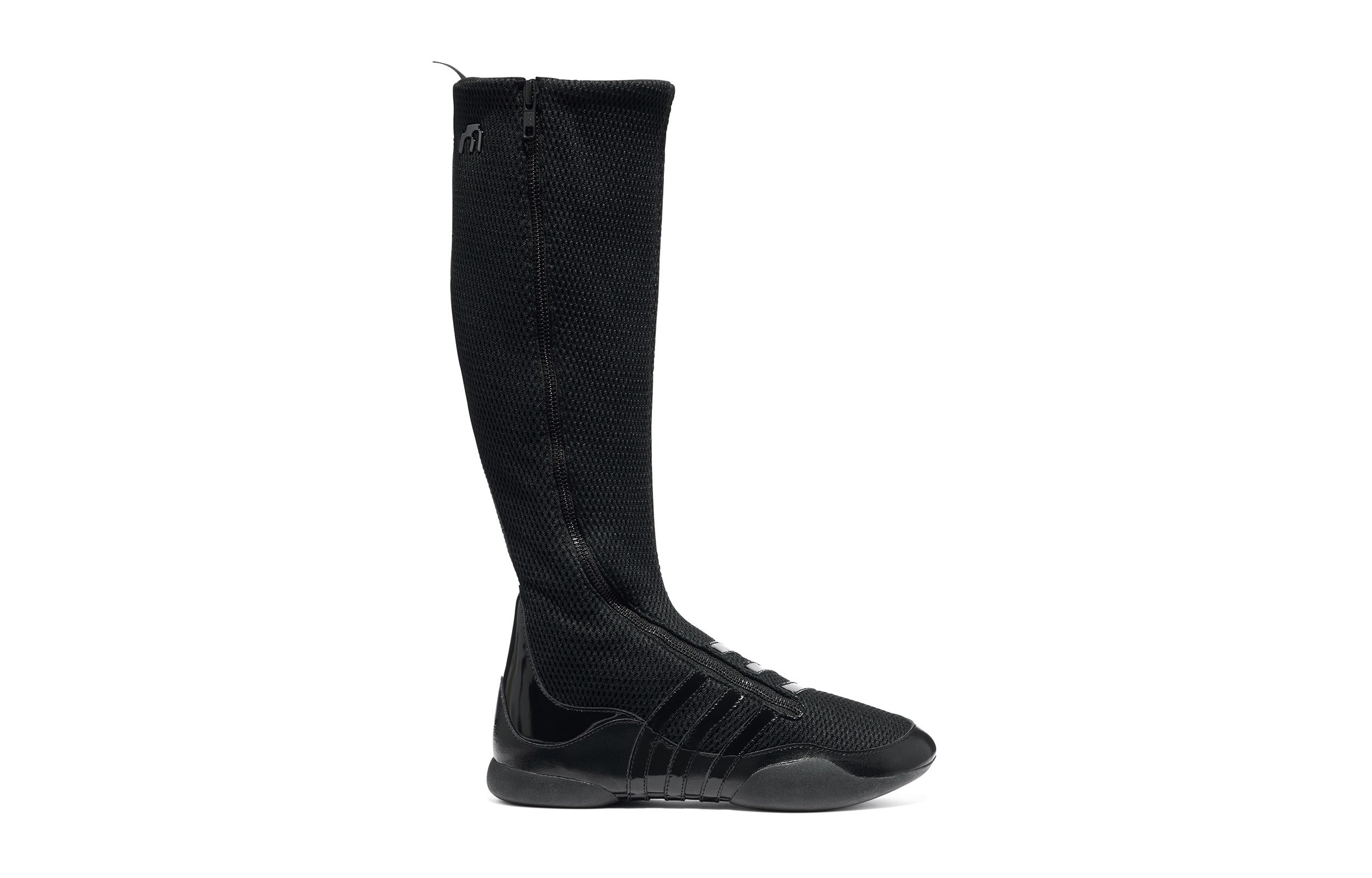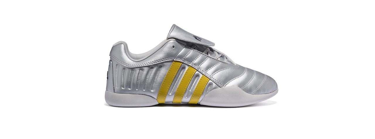 Kickstarting the partnership are two distinct footwear styles — the Mei Elite Miaou and the Miaou Boot. The Mei Elite features a silver satin upper with contrasting yellow stripes and embroidered “M” branding on the tongue, while the boot takes adidas’ Taekwondo tooling and reimagines it with a high-cut mesh body, leather Three Stripes, and a black metallic “M”-branded zip pull. Both pairs honor adidas’ sports heritage while infusing vintage flair and Miaou’s signature sensuality.