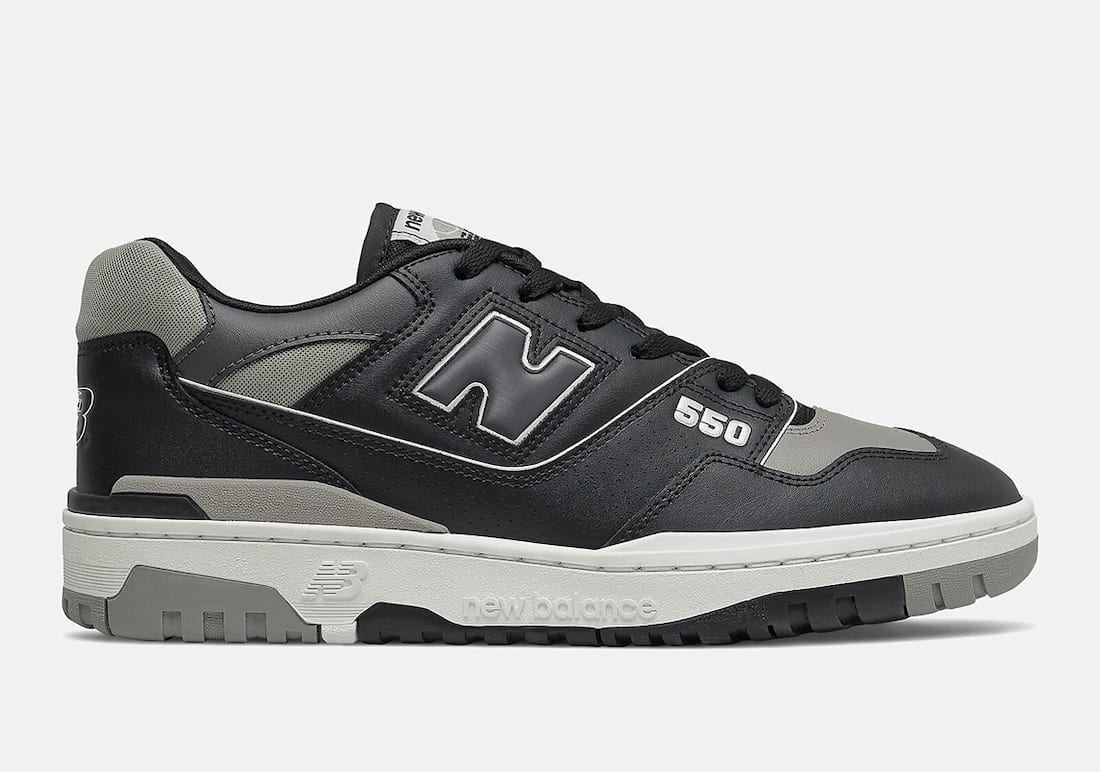 The first colorway comes dressed in an clean white color scheme with light grey accents, reminiscent of the OG “Neutral Grey” colorway of the Air Jordan 1. Coincidentally, the other 550 colorway dropping alongside this one is also reminiscent of an OG Air Jordan 1, the “Shadow.” This one comes dressed primarily in black with hits of grey. Both feature a primarily leather construction with mesh around the ankle.