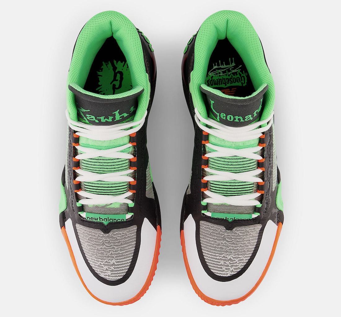 “One of the most exciting things about working with the New Balance design team is that they give me creative freedom,” says Leonard. “Goosebumps was one of my favorite books growing up, so to see that on my own shoe is awesome. I can’t wait to see people in this shoe.”