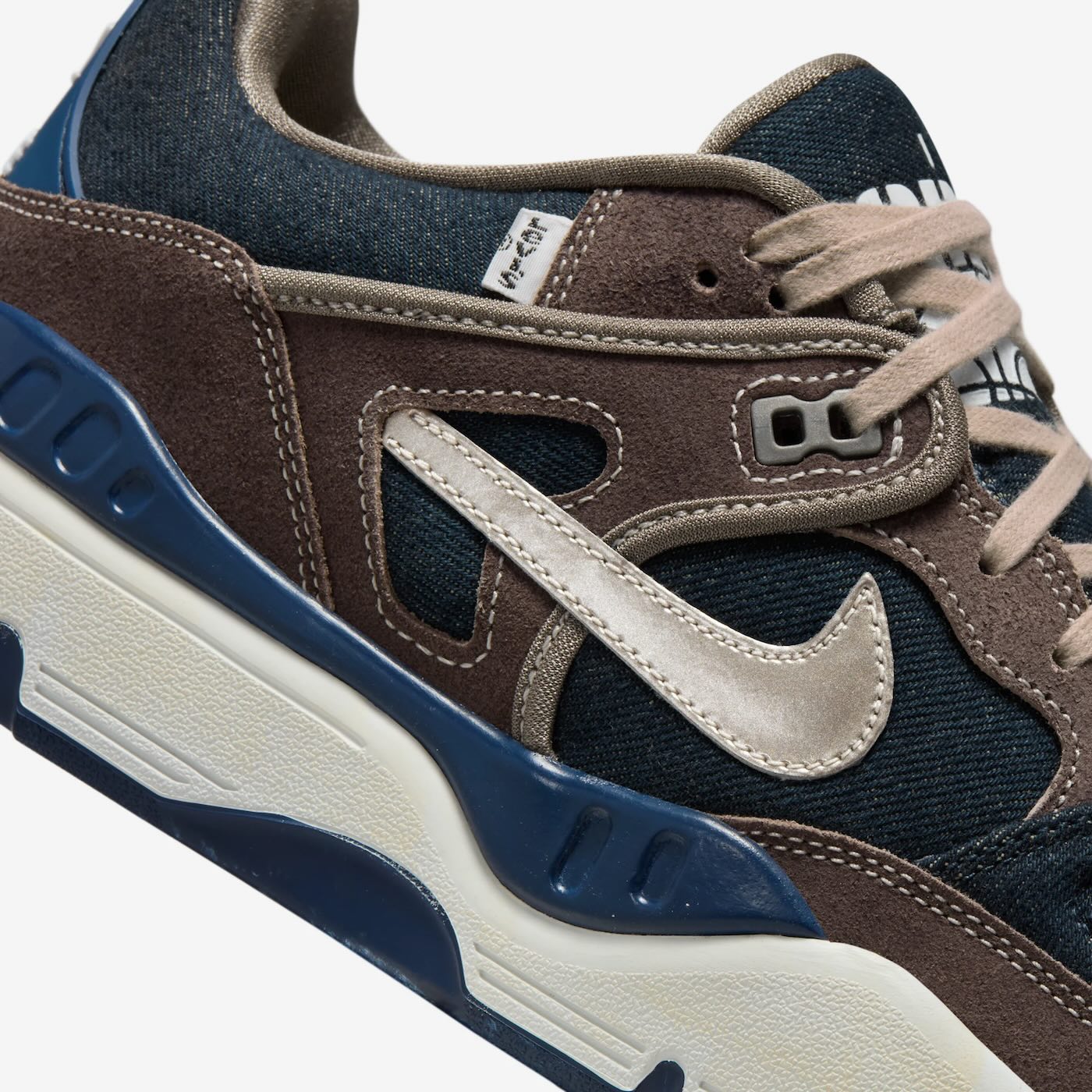 Inspired by NIGO’s love of vintage Americana fashion, this release features two denim-clad iterations of the Air Force 3 Low in “Enigma Stone” and “Olive Grey” colorways. The “Enigma Stone” pair combines dark navy denim with muted brown suede and a metallic Swoosh for a look that’s both retro and futuristic, finished off with a clean white midsole. Meanwhile, the “Olive Grey” colorway opts for a distressed look with faded denim, vintage-inspired workwear suede, and artificially aged midsoles that echo NIGO’s appreciation for the character of well-worn jeans.