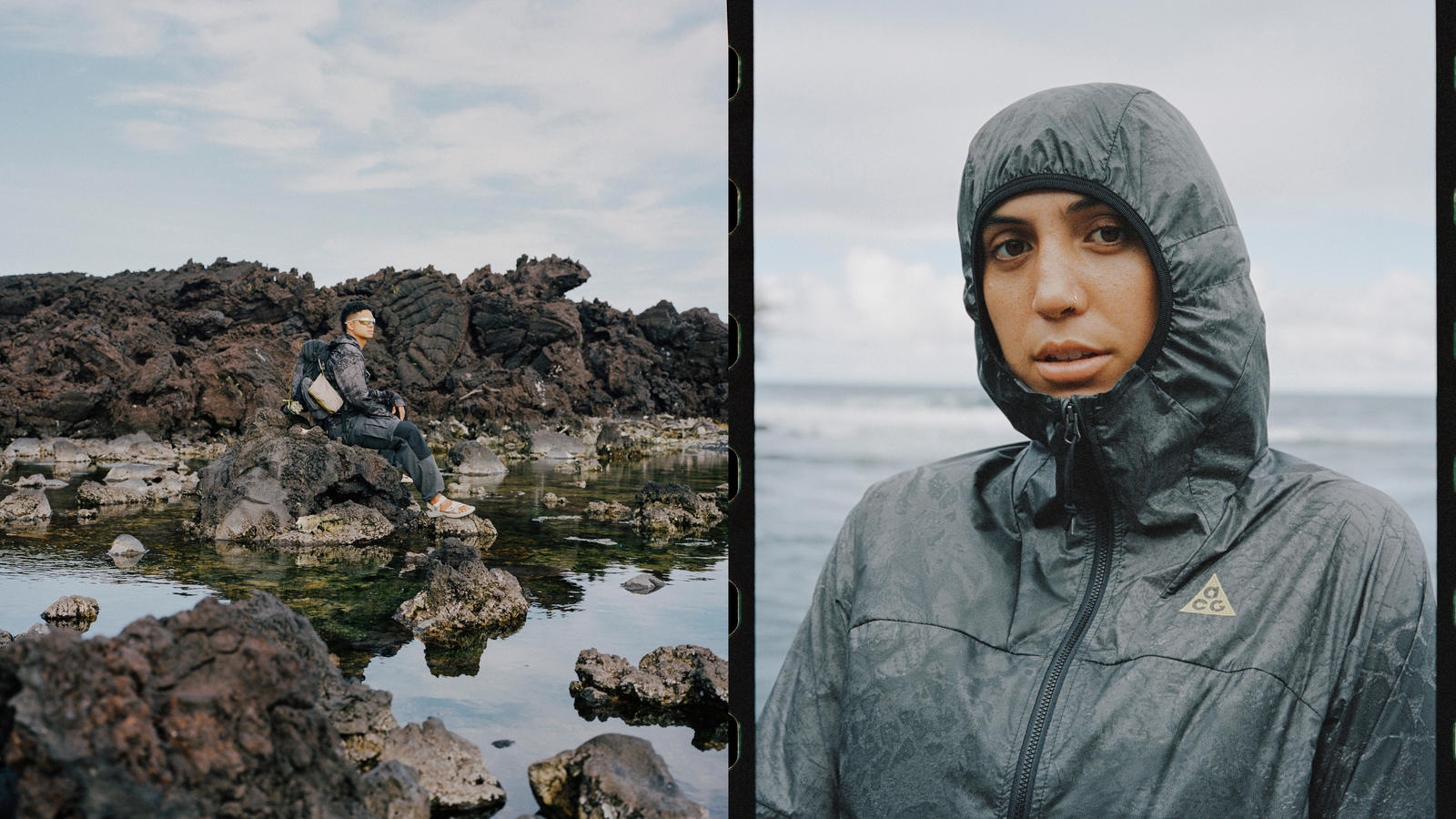 ACG’s new offerings are led in part by the Cinder Cone set, a lightweight, patterned windshell jacket and pair of pants that offer portable protection from wind and water without compromising on breathability. Elsewhere, ACG’s high tech Devastation Trail work shirt (named after a volcanic rock trail in Hawai’i Volcanoes National Park) takes advantage of Nike’s new DRI-FIT ADV, a newer fabric technology made with recycled polyester that offers breathable moisture-wicking performance, to create a wild multi-pocket button-up expedition shirt that can be rolled up for short or long sleeve UV protection.