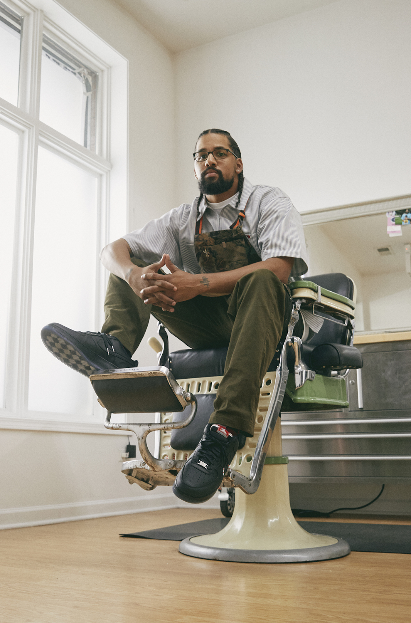 The Chicago version was created in collaboration with Drew Henderson, owner of local barbershop No Cuts No Glory. Using Drew’s story and life’s work as inspiration, the AF-1 ALL FOR 1 – CHICAGO design maintains the classic elements of the Air Force 1 while incorporating both functional and style elements from Chicago, the barbershop setting, and the barbershop community it represents. Here’s what Drew had to say about the opportunity: