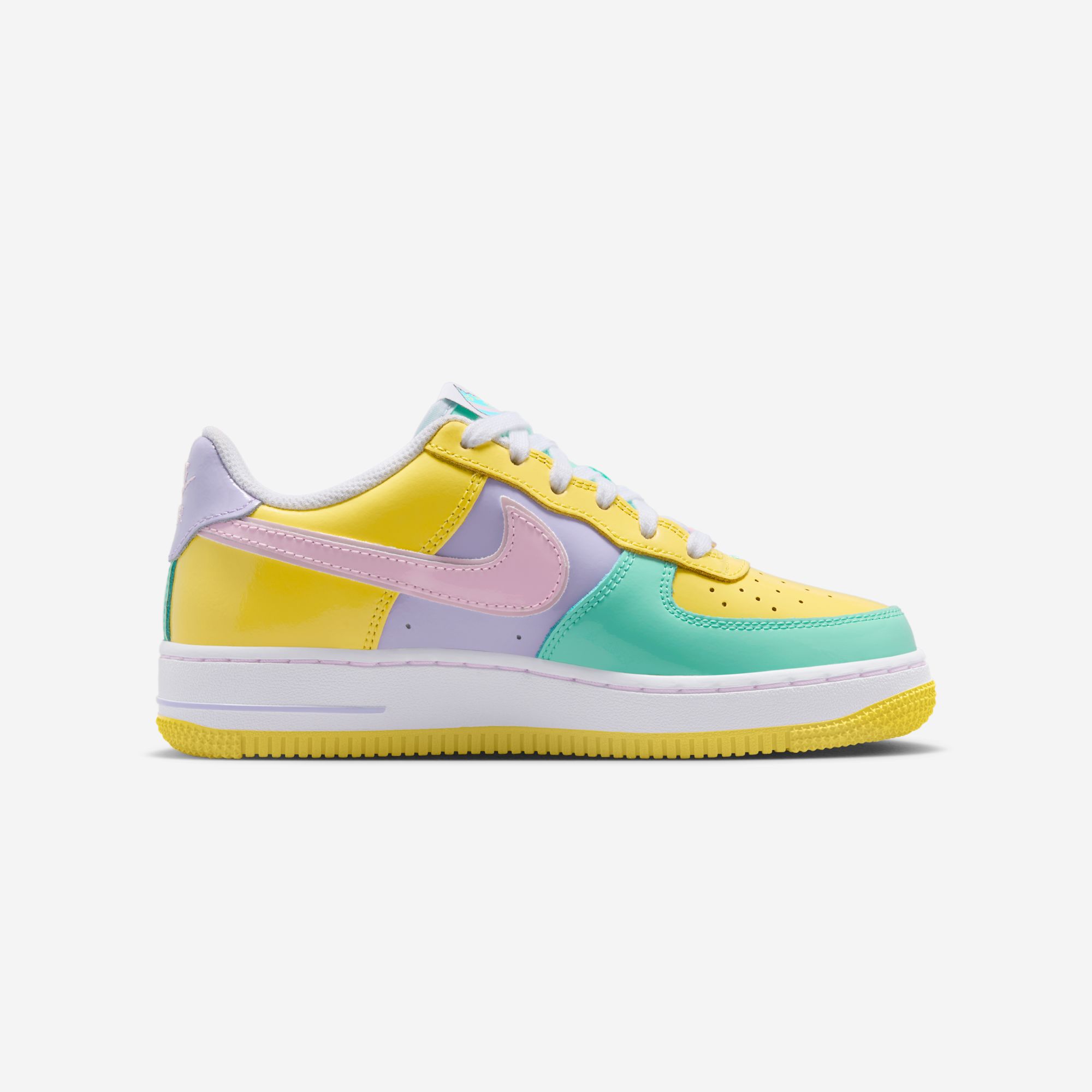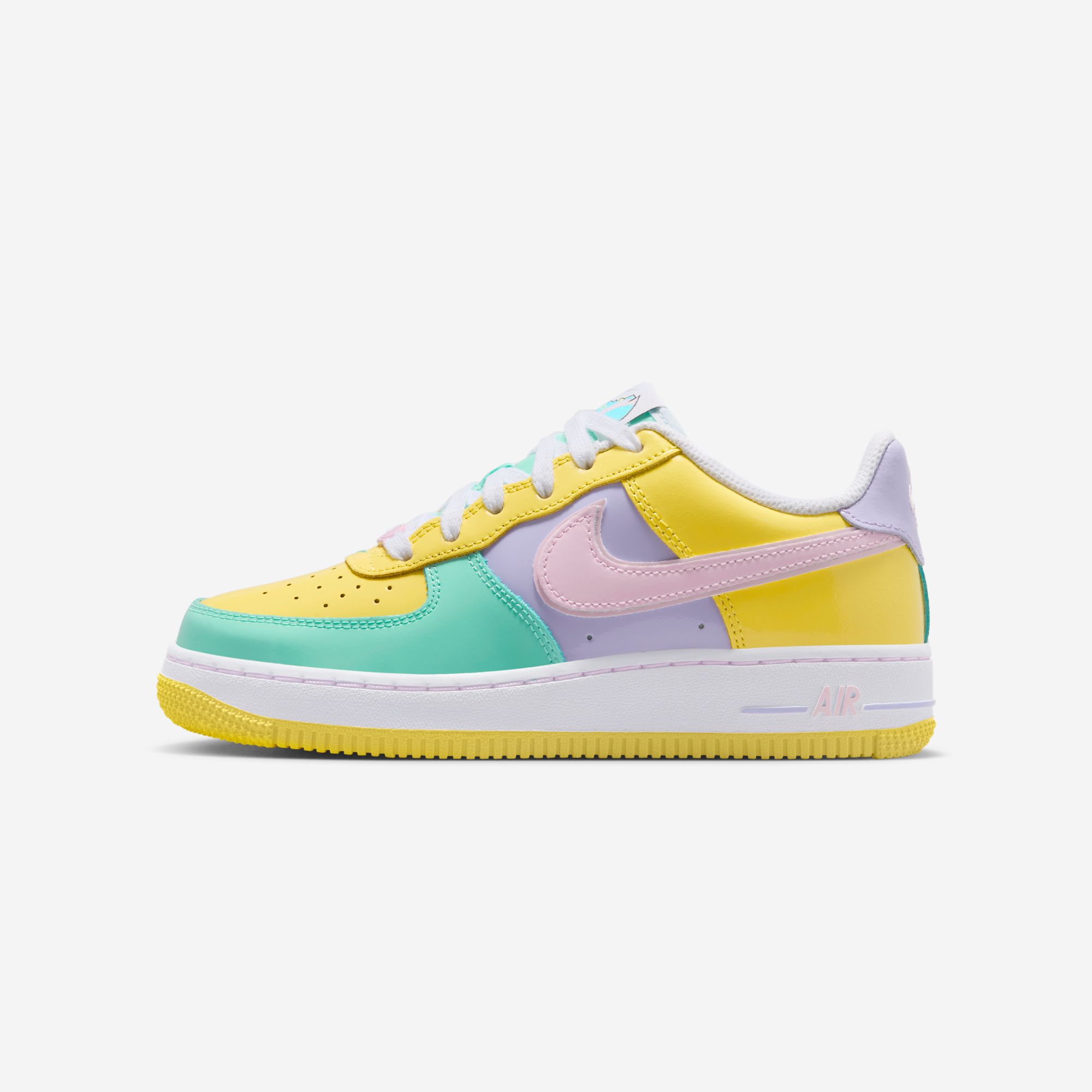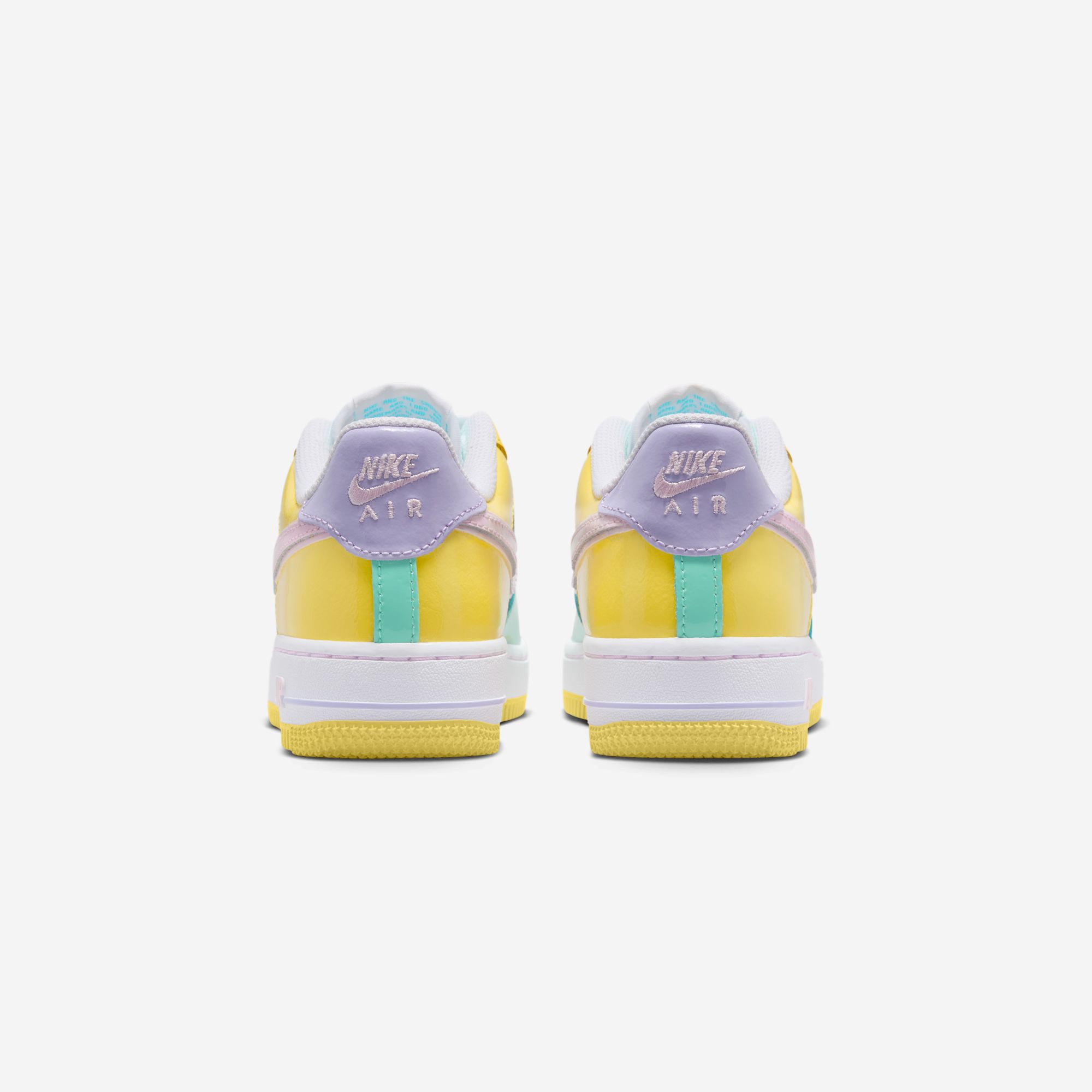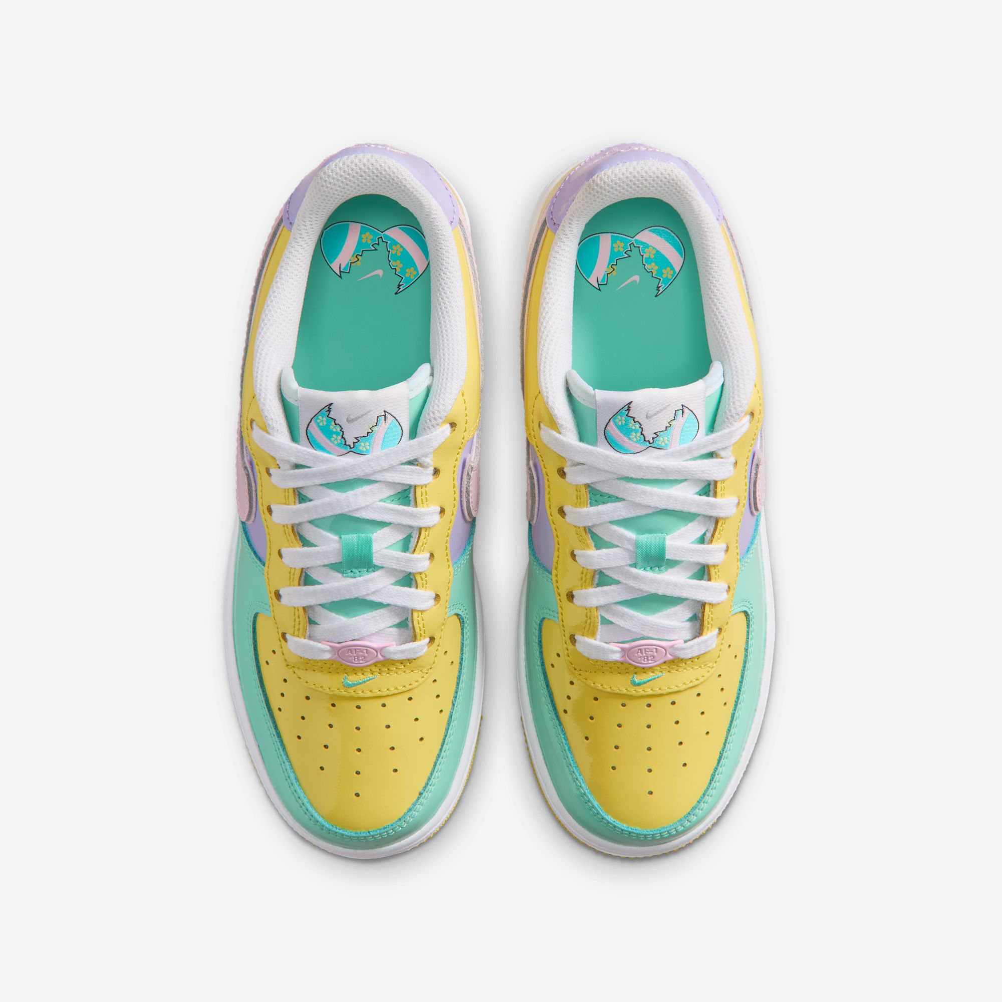 The 2026 AF1 “Easter” reimagines a classic with a fresh palette of Yellow Pulse, Emerald Rise, and Hydrangea, complemented by a Pink Foam Swoosh. The outsole showcases the vibrant Yellow Pulse, while a crisp white midsole provides a clean contrast. Staying true to its heritage, this release mirrors the design elements of the original 2005 and 2006 versions. Subtle Easter egg graphics on the insole and tongue tag add a playful touch, maintaining a refined aesthetic in comparison to past editions.