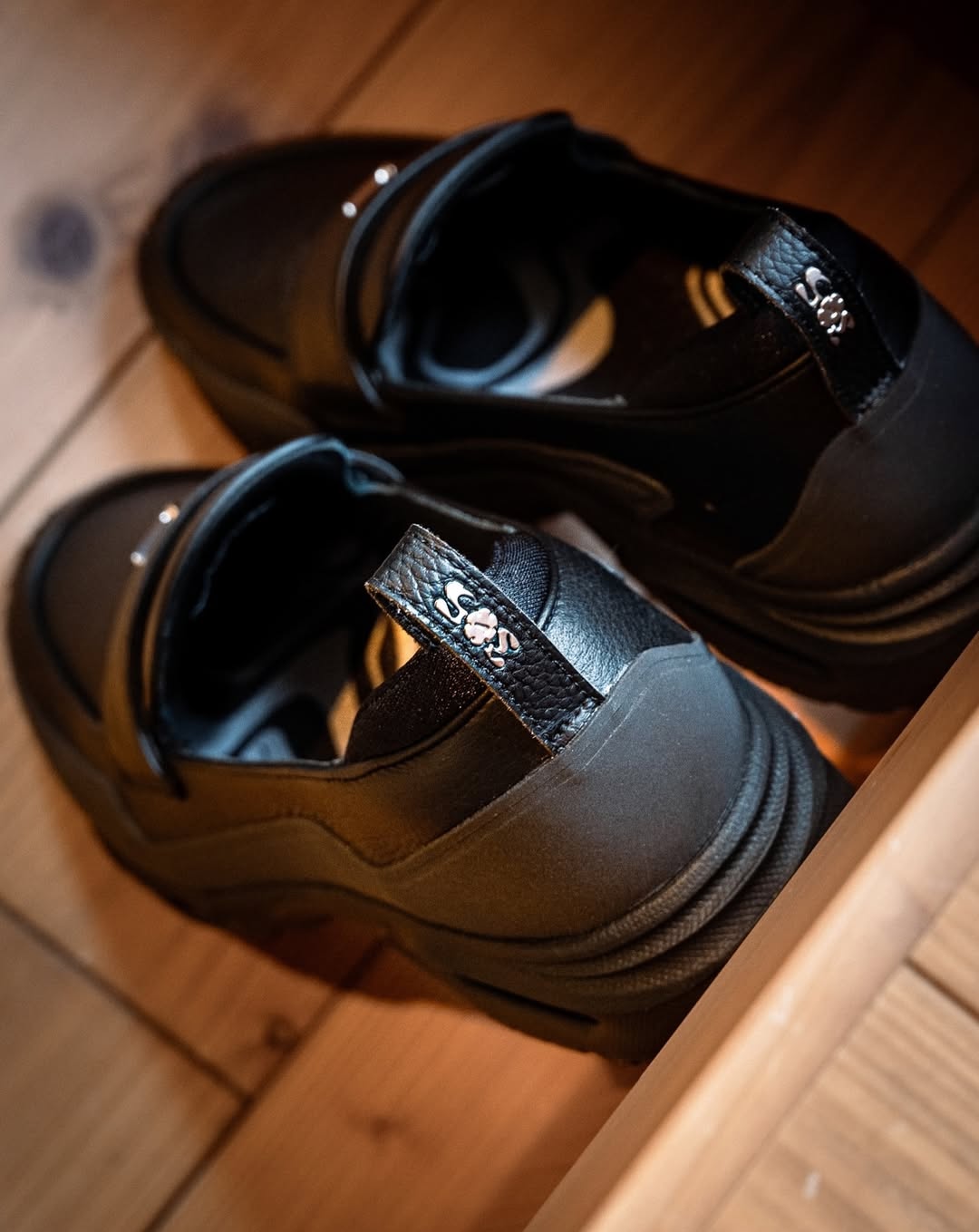 Part of the Serena Williams Design Crew (SWDC) collection, the Air Max Phenomena blends the tech-forward sole of the Air Max SNDR and combines it with a tumbled leather penny loafer upper, creating a hybrid that’s equal parts formal and functional. The debut pair arrives in a stealthy “Triple Black” colorway, accented by a mini metallic silver Swoosh on the forefoot strap.