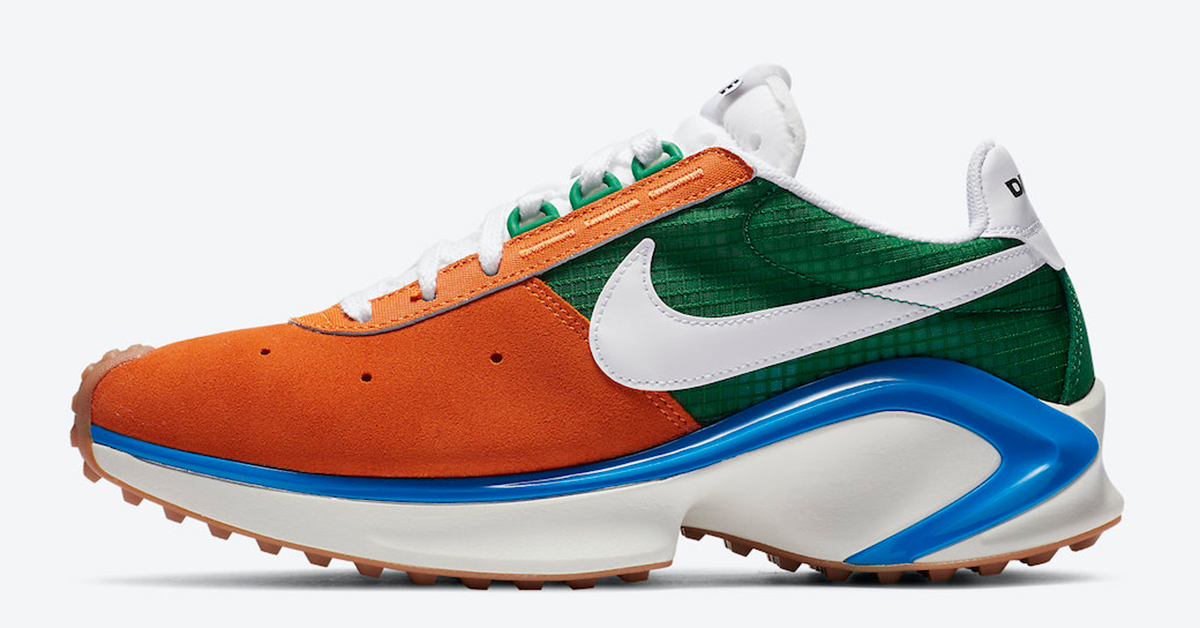 The release is a reinterpretation of the original Nike Sting from 1978. Just like the OG release, the model incorporates a two-tone upper that sees the toebox shrouded in an orange suede-textured material that reaches all the way to the edge of the shoe’s white Swoosh. The back end of the shoe appears to use an updated Kelly green ripstop nylon broken only by a branded white leather heel piece. The upper is rounded out by an orange sewn eyestay and three green plastic eyelets (a nod to the OG Sting’s first-of-its-kind D-ring eyelets) near the top of the shoe.