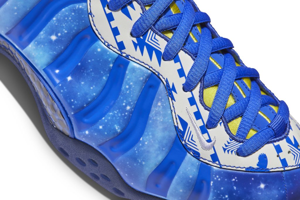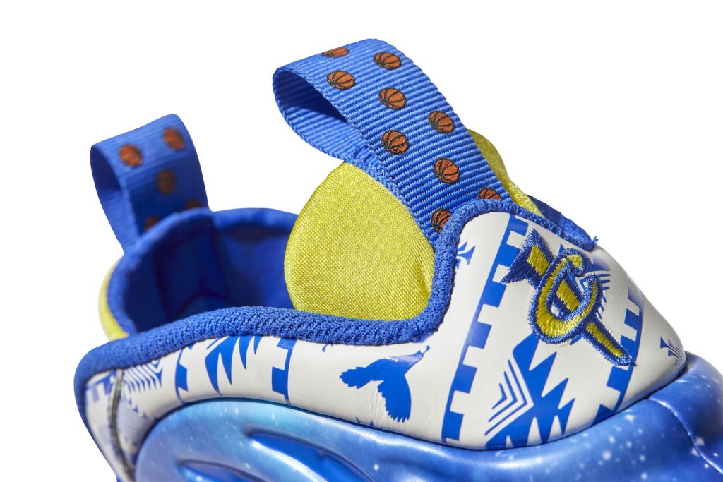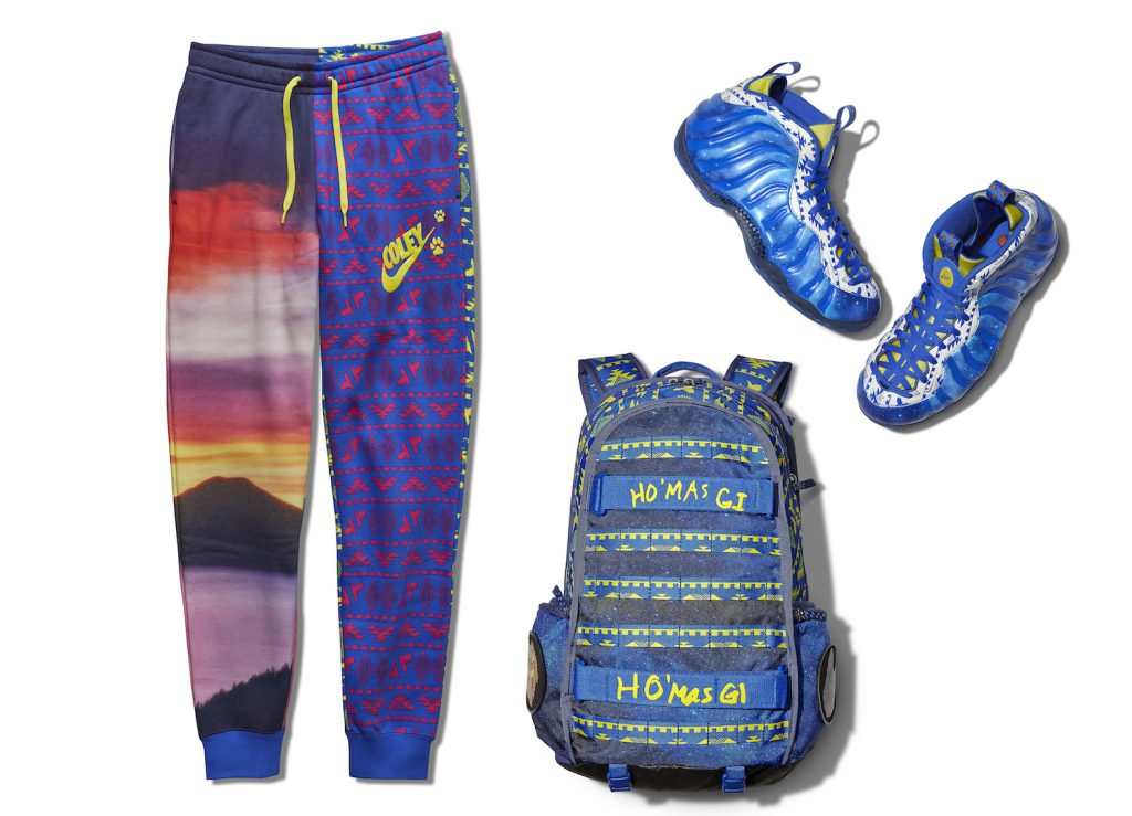 As a proud member of the Klamath Tribes, Coley Miller found plenty of design inspiration within her culture. Her retro hoop shoe features a basket weave graphic that incorporates a quail plume and the Klamath mountains. The night sky graphics are inspired by stargazing with her mother, who donated one of her kidneys to Coley. As for the phrase “ho mas gi” on the outsole, that’s a reminder to Just Do It in Coley’s Klamath language.