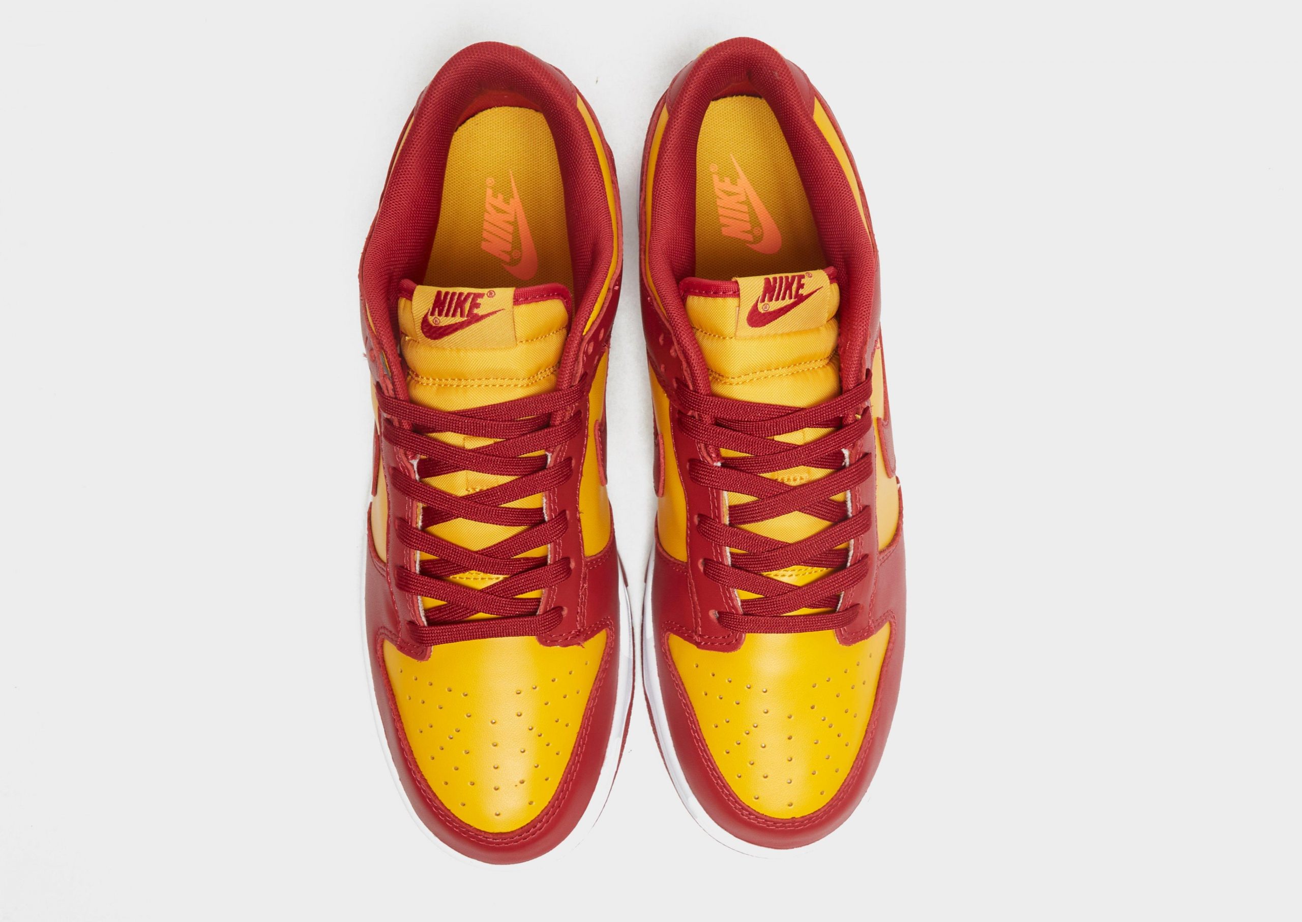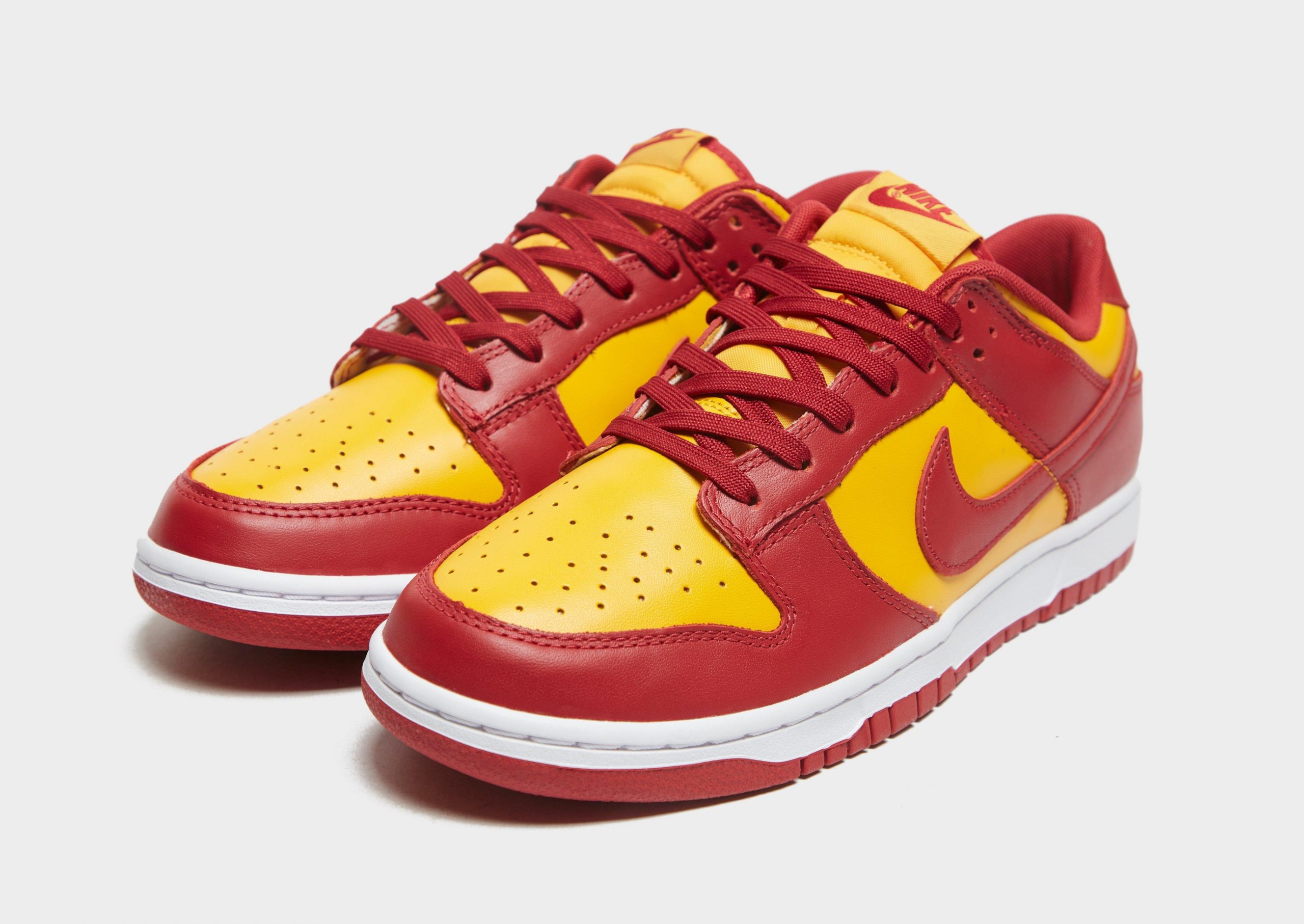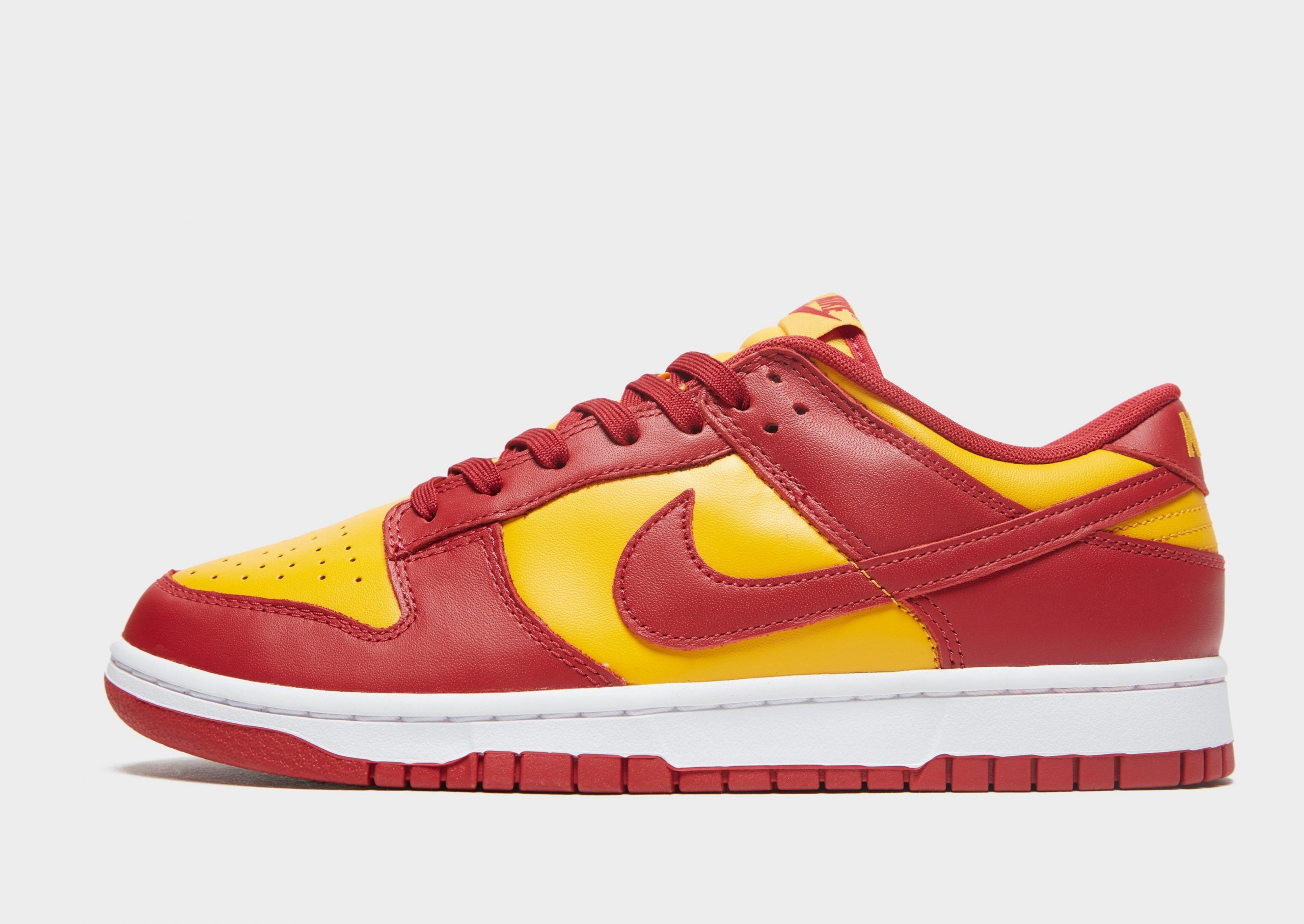 This Dunk Low features a Midas Gold and Tough Red color scheme inspired by the University of Southern California Trojans. Gold leather dresses the base of the shoe, with dark red leather dresses the overlays. A white midsole and red outsole are found underfoot.