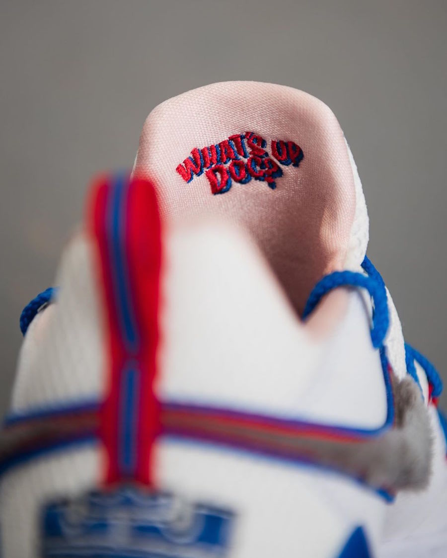 The Nike LeBron 17 features a purple Knitposite upper with galaxy-inspired hits of iridescence throughout. The tongues resemble the Monstars’ “Pound” and “Bupkus,” dressed in orange and purple with a number 0 embroidered atop the lacing system. Official Warner Bros and Space Jam branding can be found on the inside of the shoe.