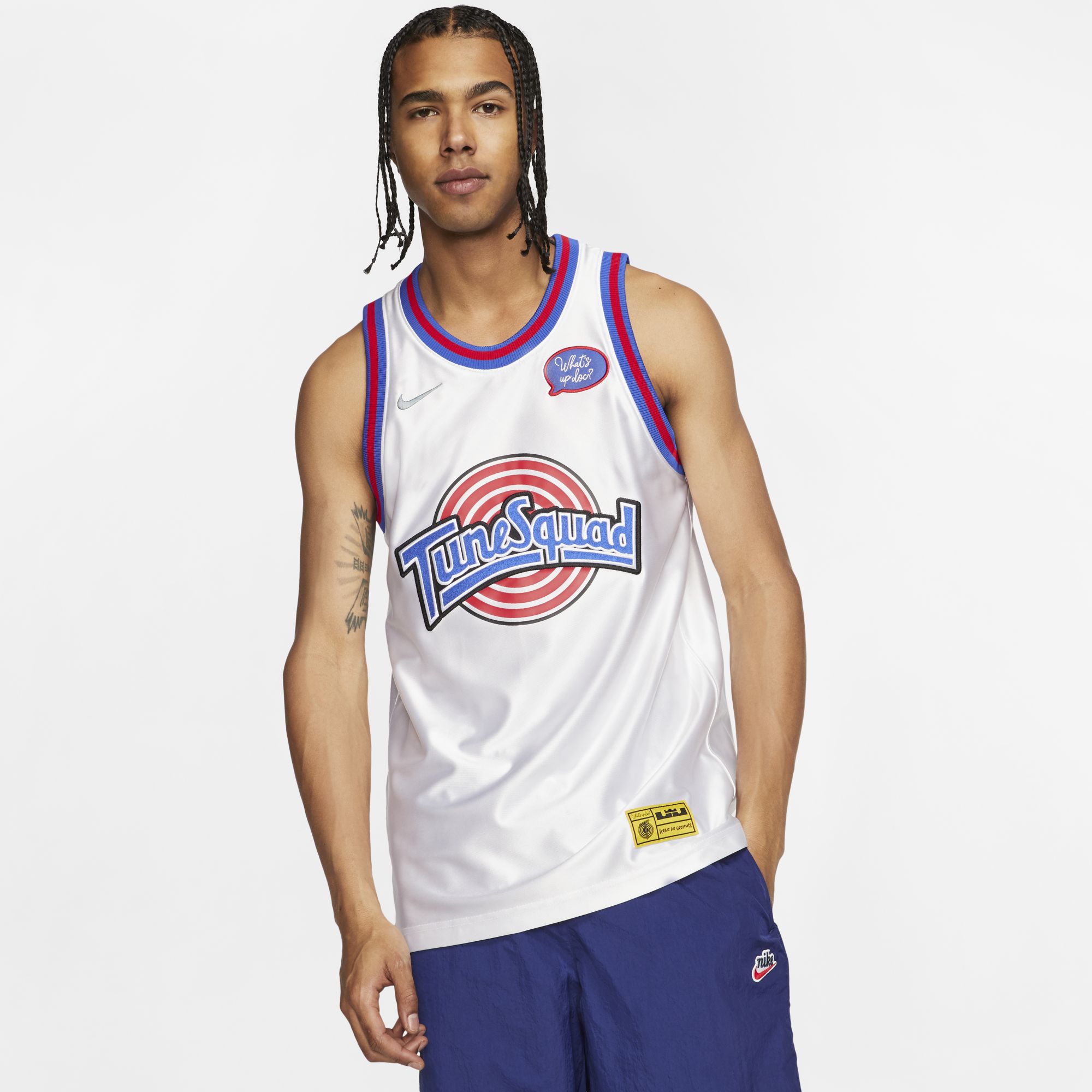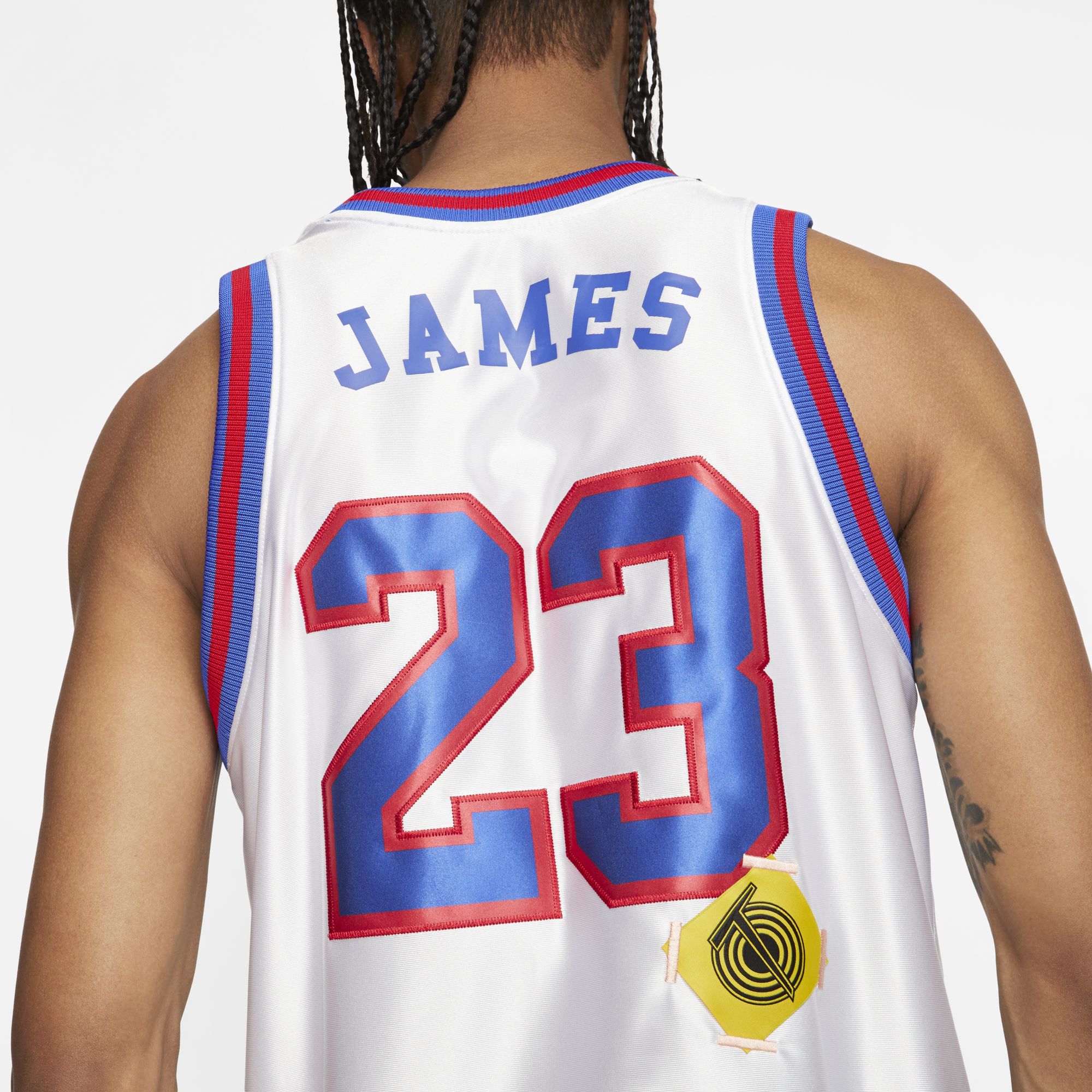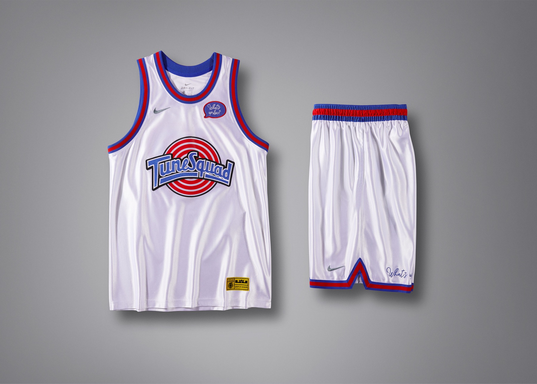The designs of the uniforms are similar to the ones in Space Jam, but now come decked in Nike and LeBron branding. Additional details include a cosmic print number 0 on the Monstars jersey and a “What’s Up Doc?” speech bubble on the Tune Squad jersey.