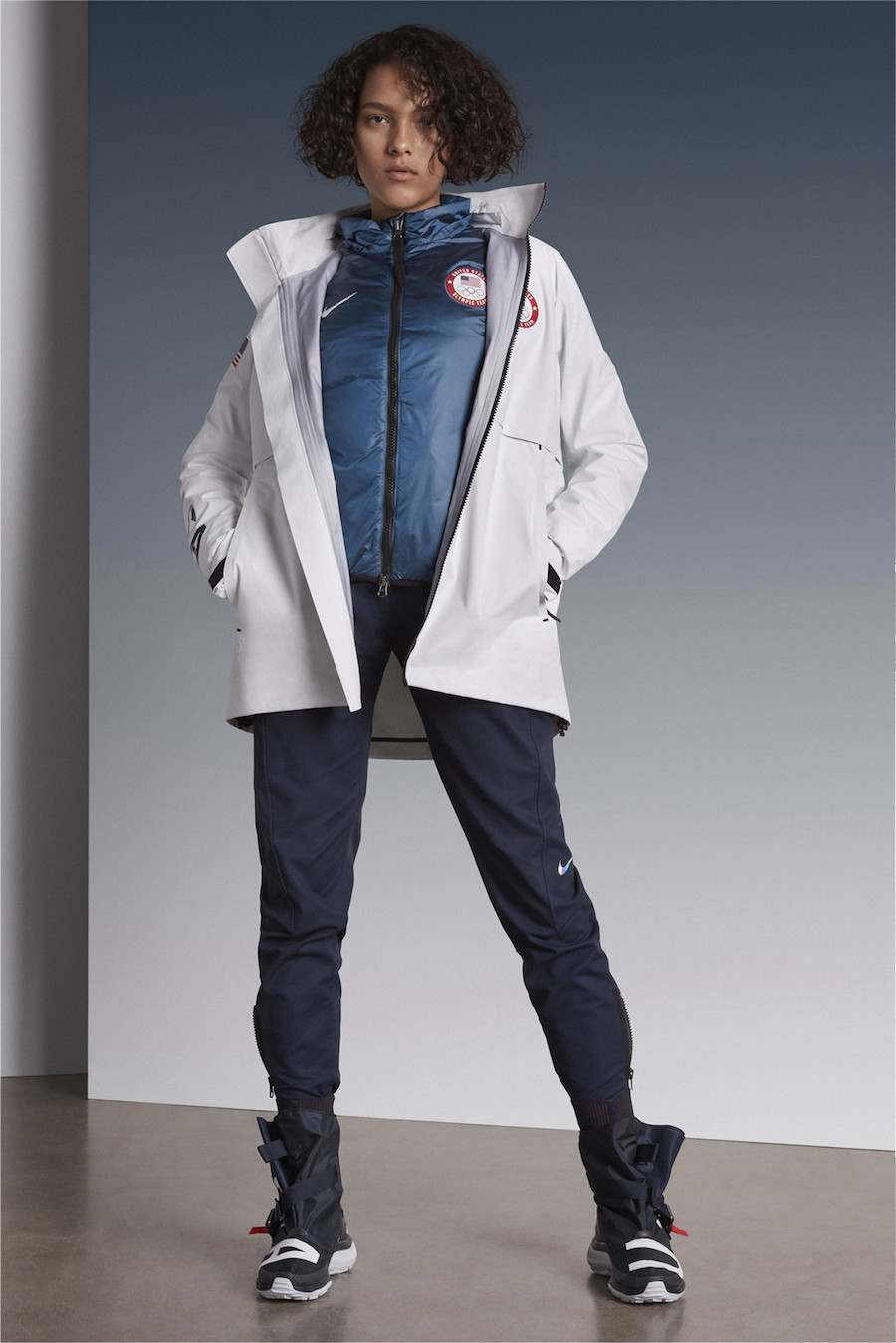 With almost all of the medal ceremonies held in open-air arenas where temperatures expected to be below freezing, Nike has designed the collection to help the American Athletes withstand the elements during their crowning moments. Within the collection includes: The Summit Jacket System, Team USA Pant, NSW Gaiter Boot, and the Medal Stand Glove.