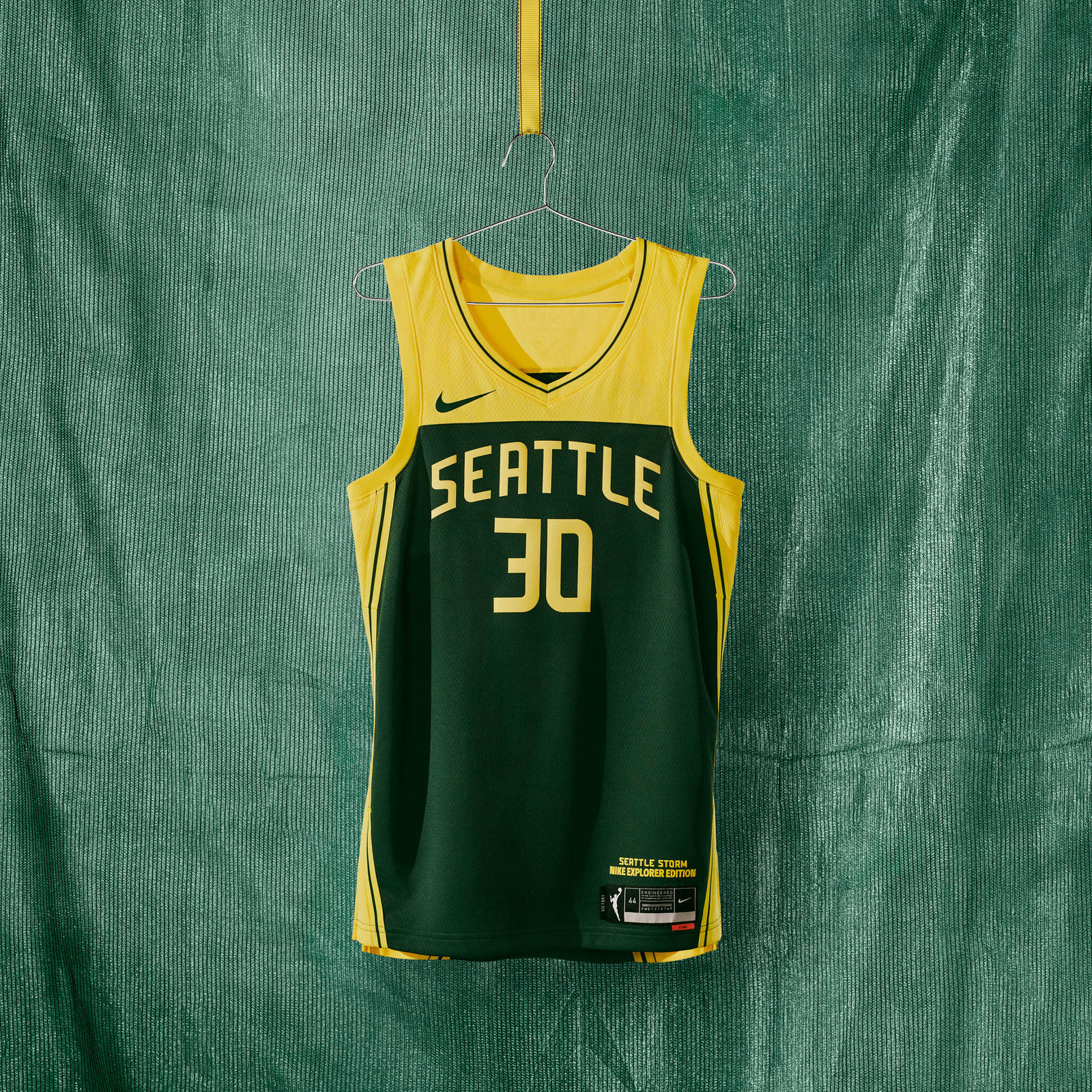 “We have uniforms that are uniquely ours,” says Seattle Storm point guard Sue Bird. “Every single jersey shares a story that represents our city, and the distinction allows us to express our own creativity and individual style. Nike’s attention to each design detail makes me proud to put the uniform on.”