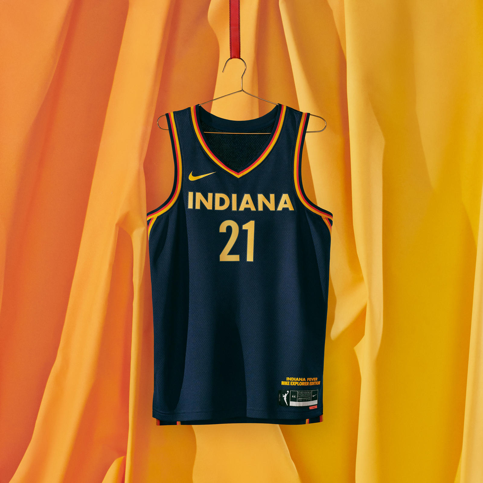 Inspired by Lady Victory, the uniform integrates sash-like details down the sides. Each feature 19 stars — an allusion to the state flag and Indiana’s place as the 19th member of the Union.