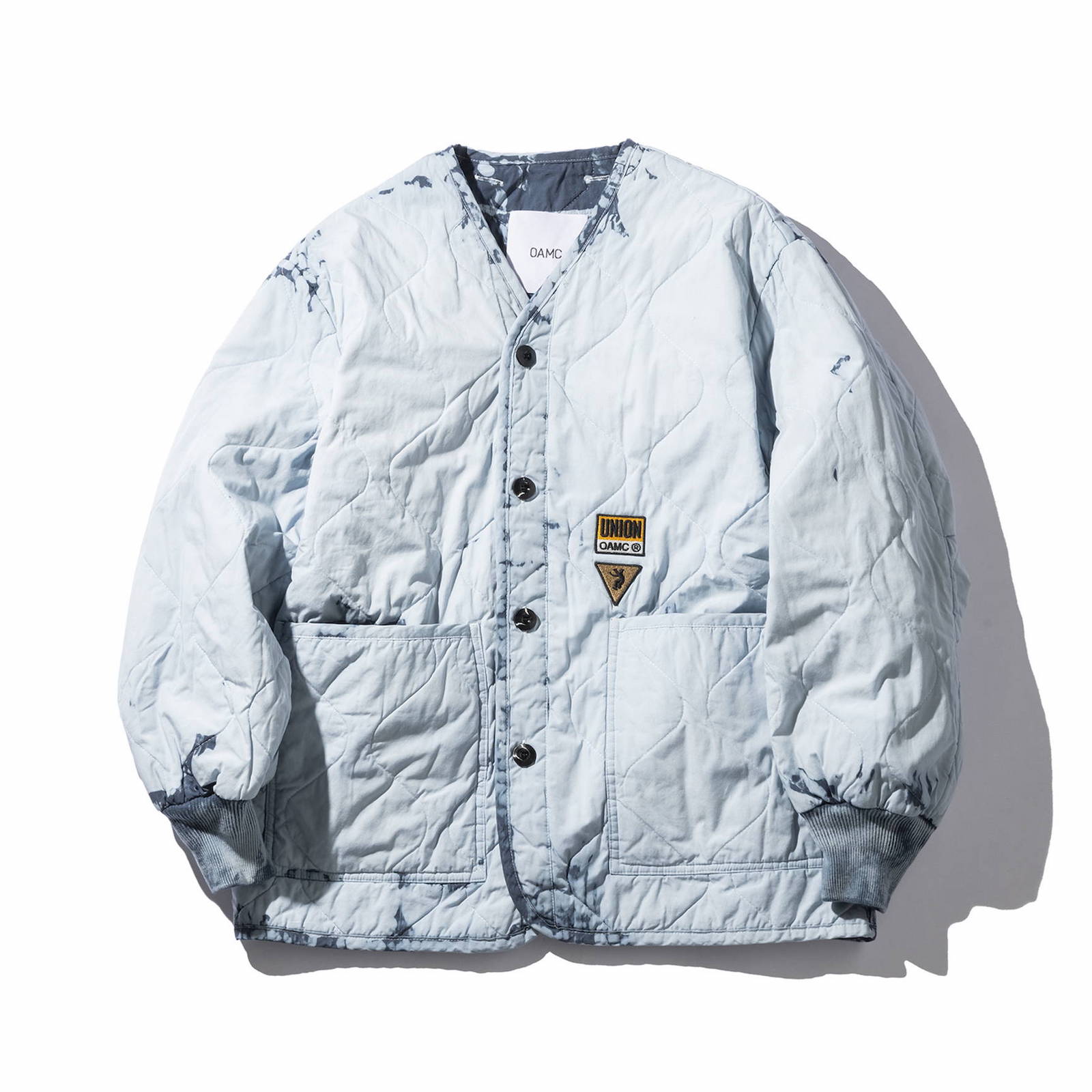 The capsule is comprised of four pieces: OAMC’s signature quilted liner jacket, an ultra-thick snap button collared shirt, a heavy ounce crew neck pocket tee, and a pair of pants made from the same thick material as the aforementioned shirt. All four come in navy and beige colorways and are treated with a special dye and bleaching process, making each individual piece unique. Each piece also features co-branded embroidered patches on the front left side, while on the inner side is an autographed message from Luke congratulating UNION on their 30 years.