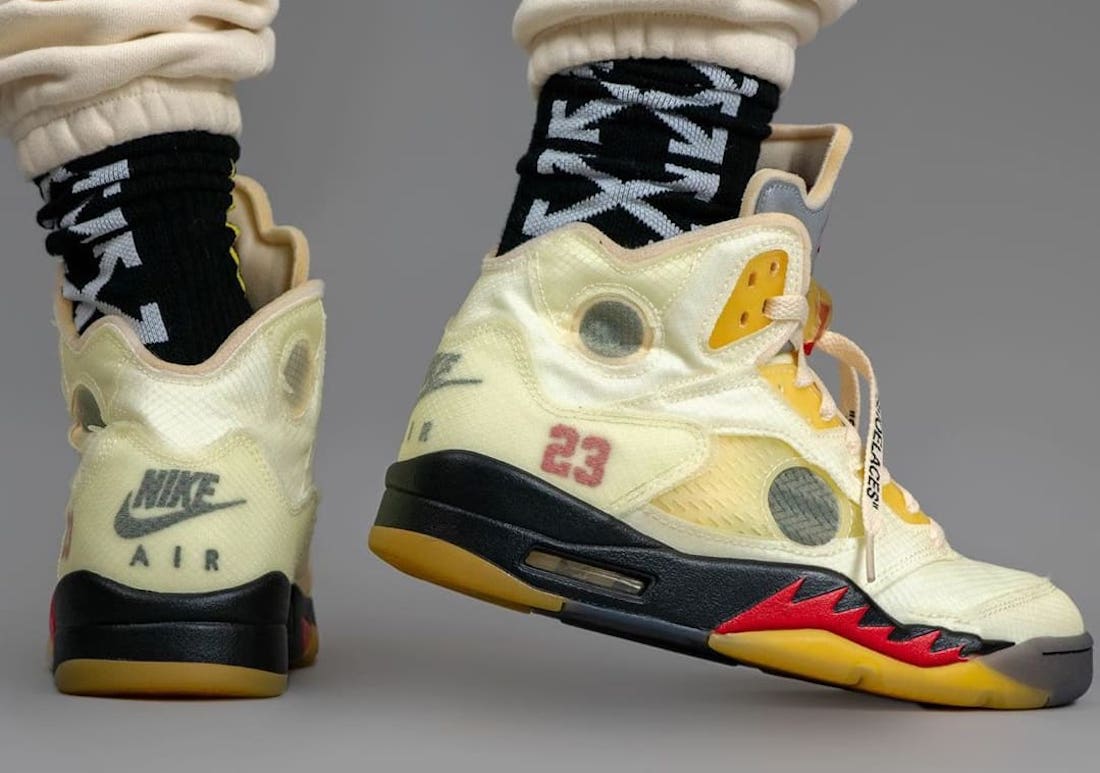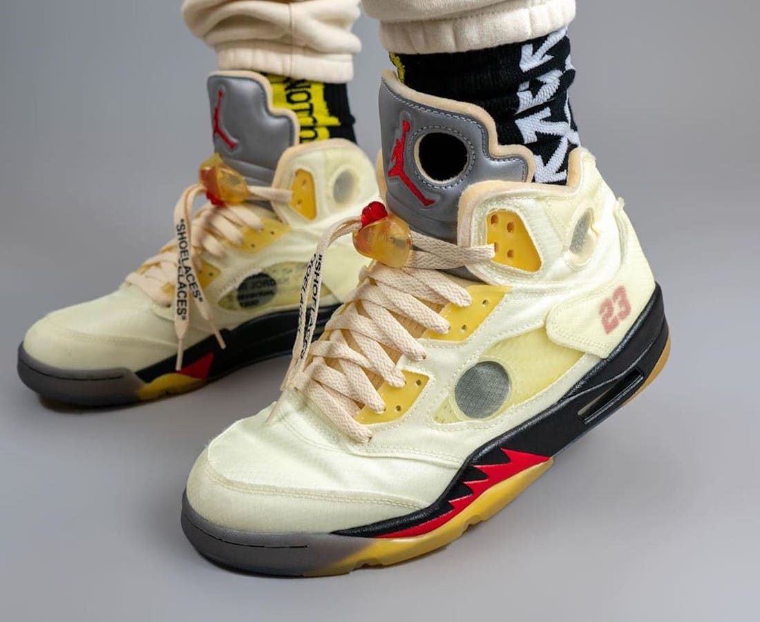 Off-White x Air Jordan 5 “Sail” on-feet via yankeekicks: