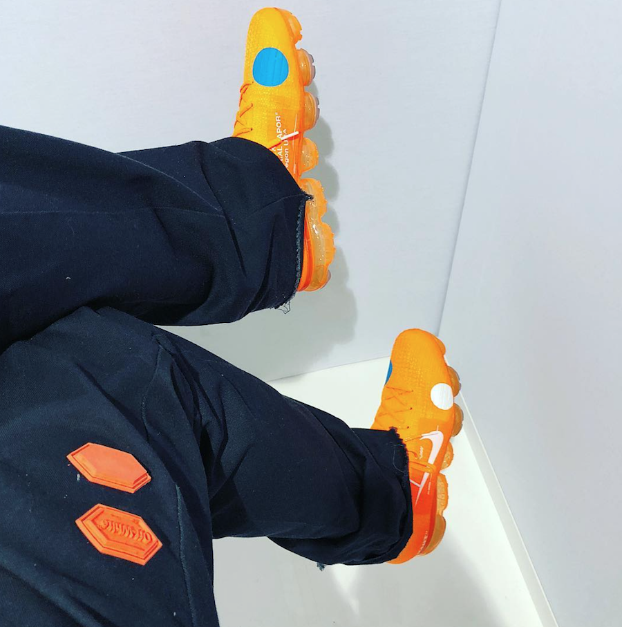 Virgil Abloh created a Mercurial inspired Nike Vapormax x Off White featuring an orange tone throughout. Inspired by the soccer boot, the Nike Mercurial Vapormax features a tonal orange upper alongside circle shapes near the toe box. Off White branding is featured on the inner shoe, alongside various details throughout. No word on when these will be releasing but stay tuned with Modern Notoriety for more news on this upcoming Nike Vapormax.