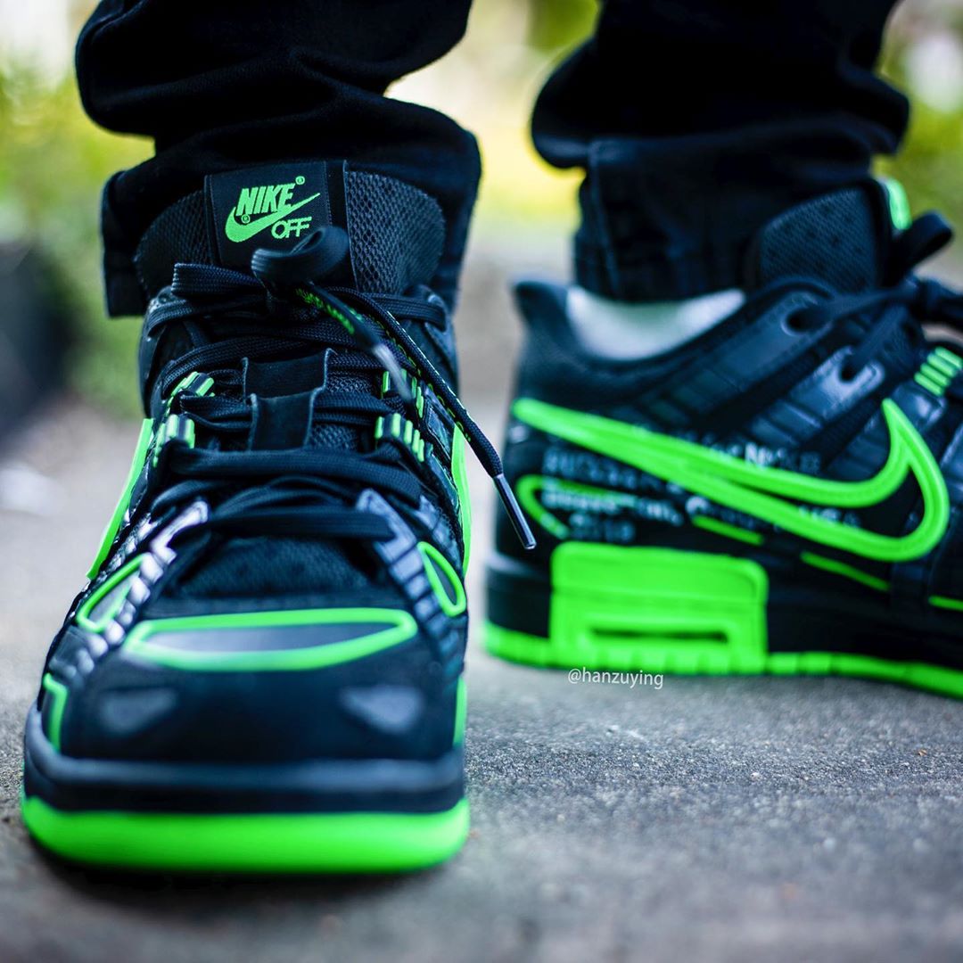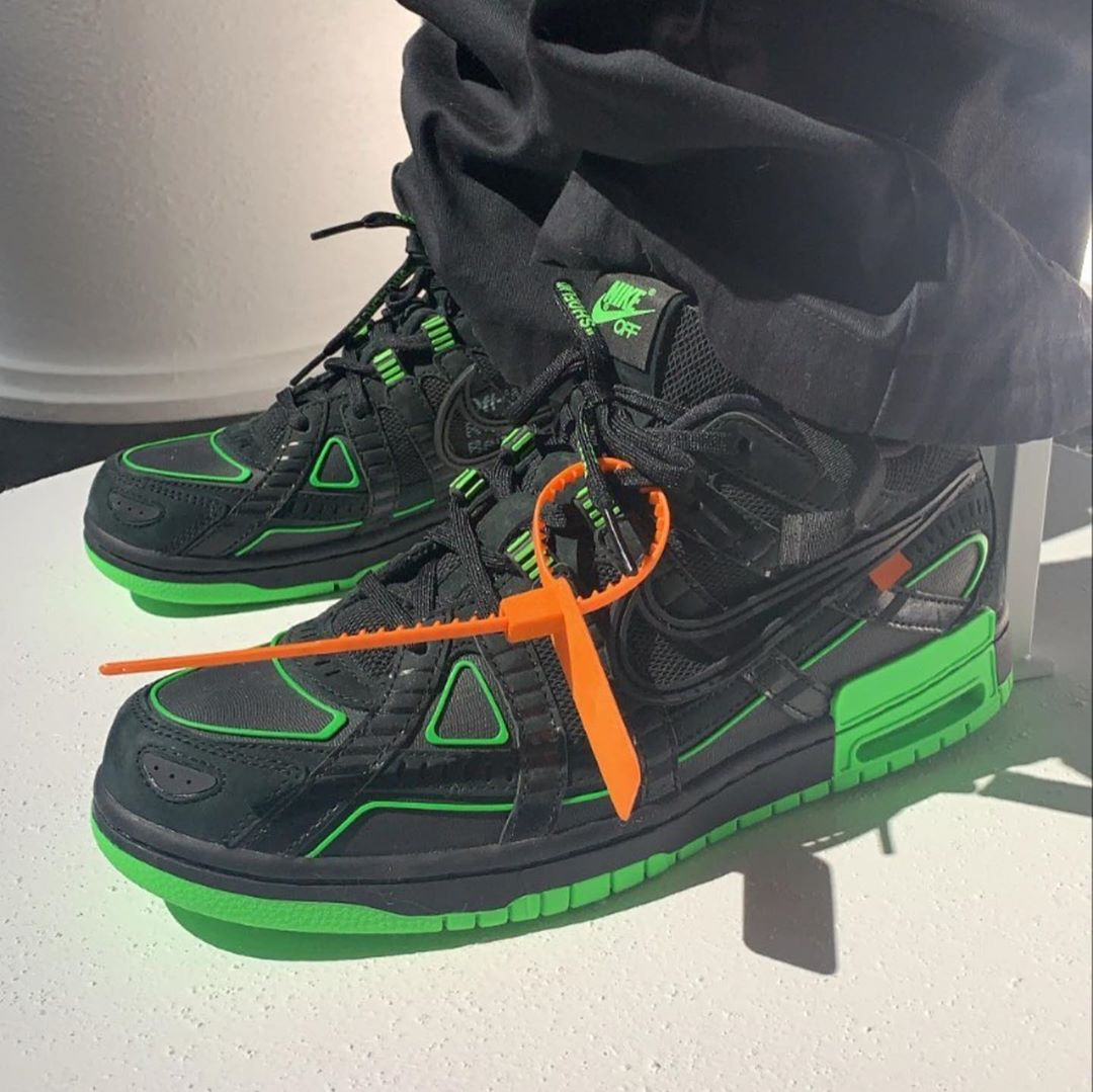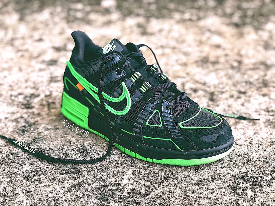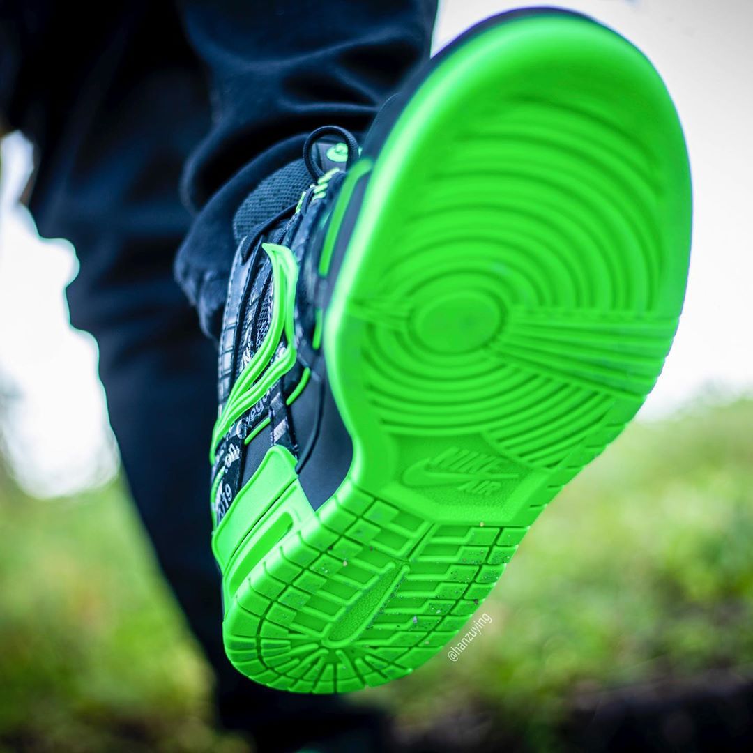Update (04/10/20): Sneaker leaker HanZuYing has provided a few photo sets of the Off-White x Nike Air Rubber Dunk “Green Strike.” Check out some on-feet photos below.
