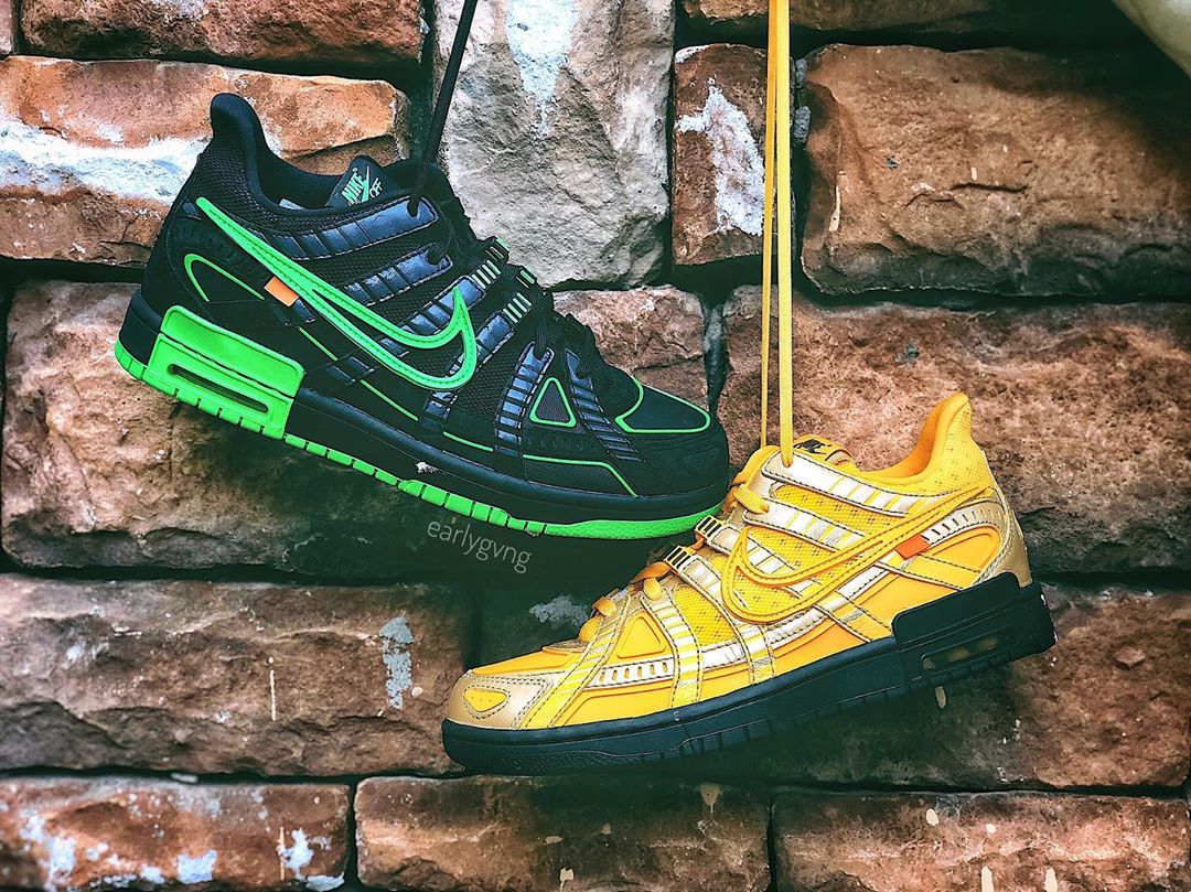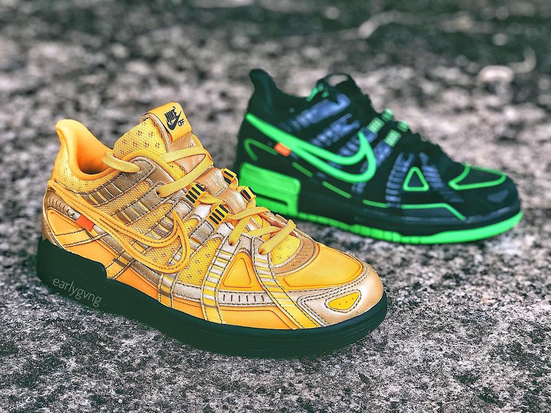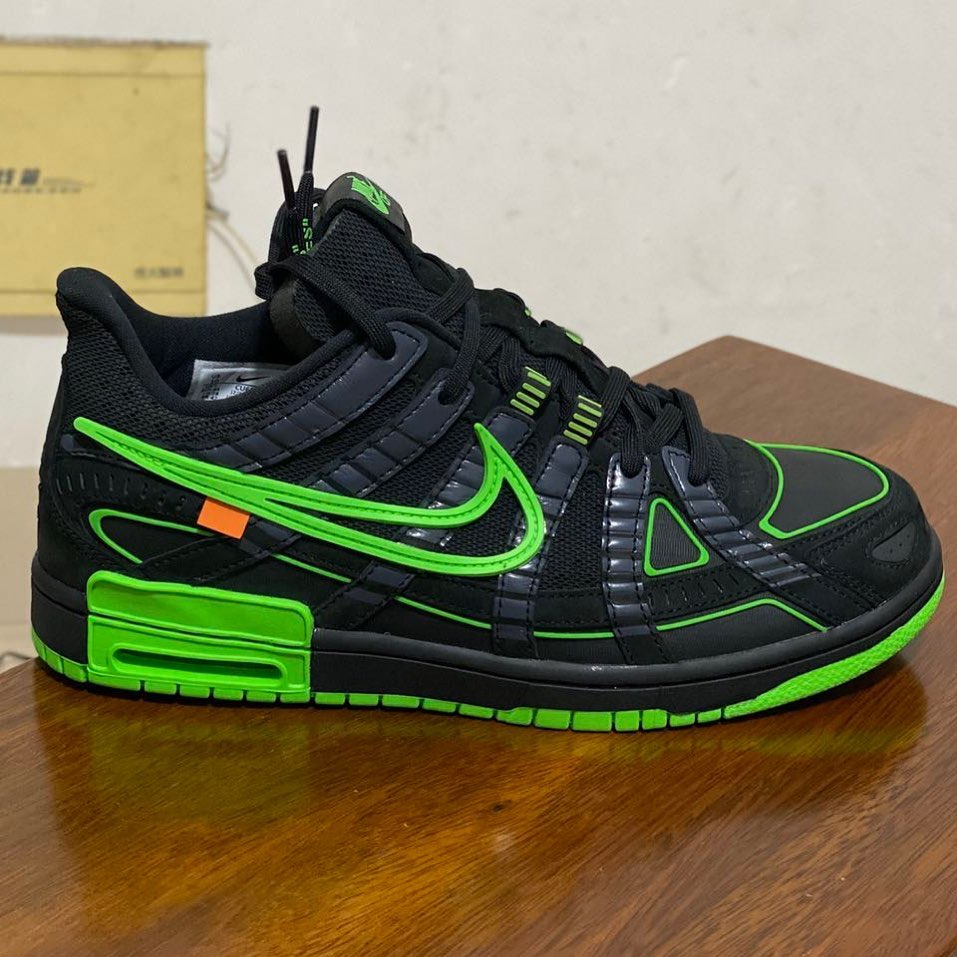 Update (04/01/20): Although all three upcoming colorways of the Off-White x Nike Air Rubber Dunk have surfaced, a variation of the “Green Strike” has surfaced. This version features a green Swoosh instead of the black one seen in the initial reveal. Check it out below, courtesy of solebyjc.