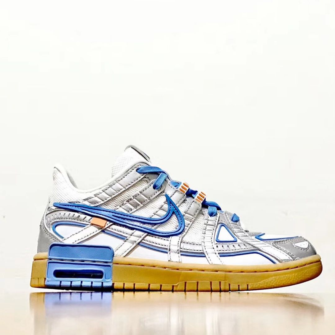 Update (02/06/20): Virgil Abloh has confirmed that this new silhouette is the Air Rubber Dunk. Expect a “White/University Blue/White” and a “University Gold/University Gold/Black” colorway to release this summer as well.