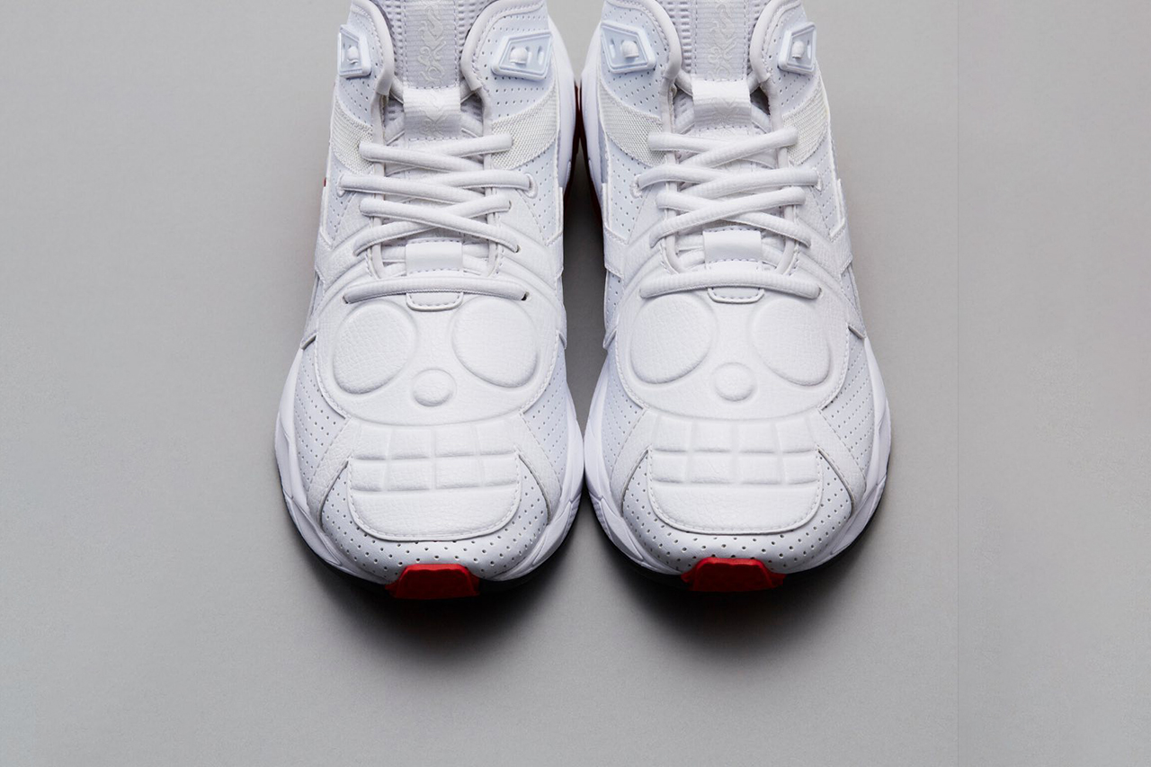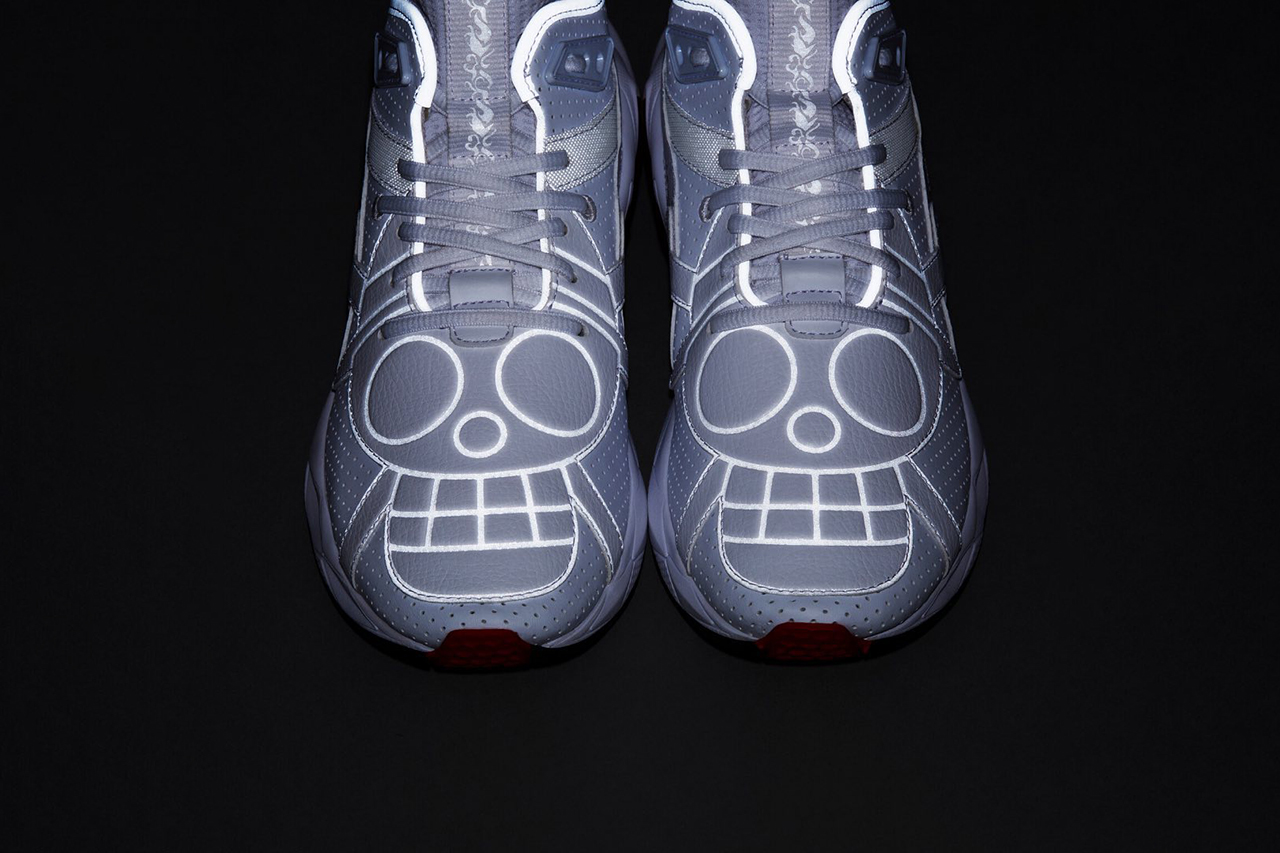 The LQD CELL ONEPIECE is dressed in a white upper and features a large skull overlay on the toe box. When you shine a light on the sneaker in the dark, the skull shines, thanks to the 3M material used on the skull’s outline. This provides a “Good vs Evil” theme and shows how good and evil can both exist in one entity. This same theme is seen on the picture of Luffy on the insoles.
