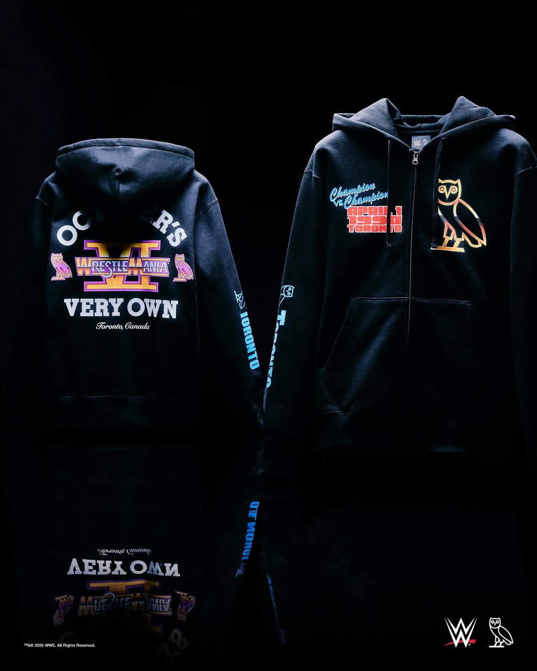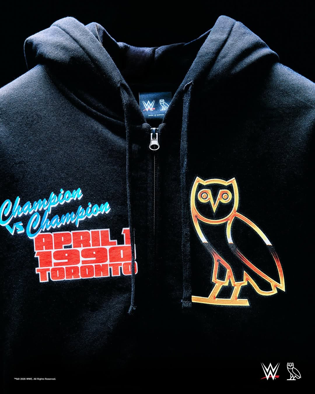 The OVO x WWE 2026 collection will be available on April 24th via octobersveryown.com (10am ET), WWE Shop, Fanatics, and OVO flagship stores. Check out the preview below.