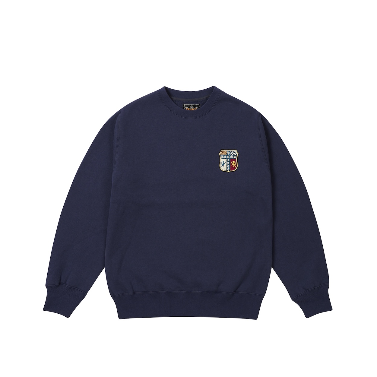 This collaboration sees Palace deliver a more sophisticated offering than usual while still capturing the brand’s signature irreverence. Casual suiting — a first for Palace — comes in a light wool mottled grey glen check, accompanied by Oxford button-down shirts, pleated twill patched trousers with embroidered patterns, and a preppy cable-knit vest.